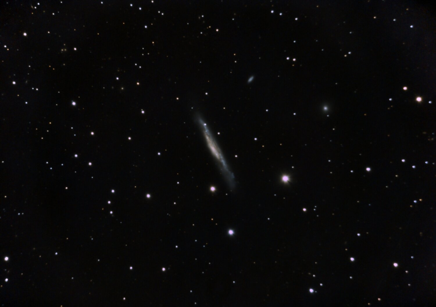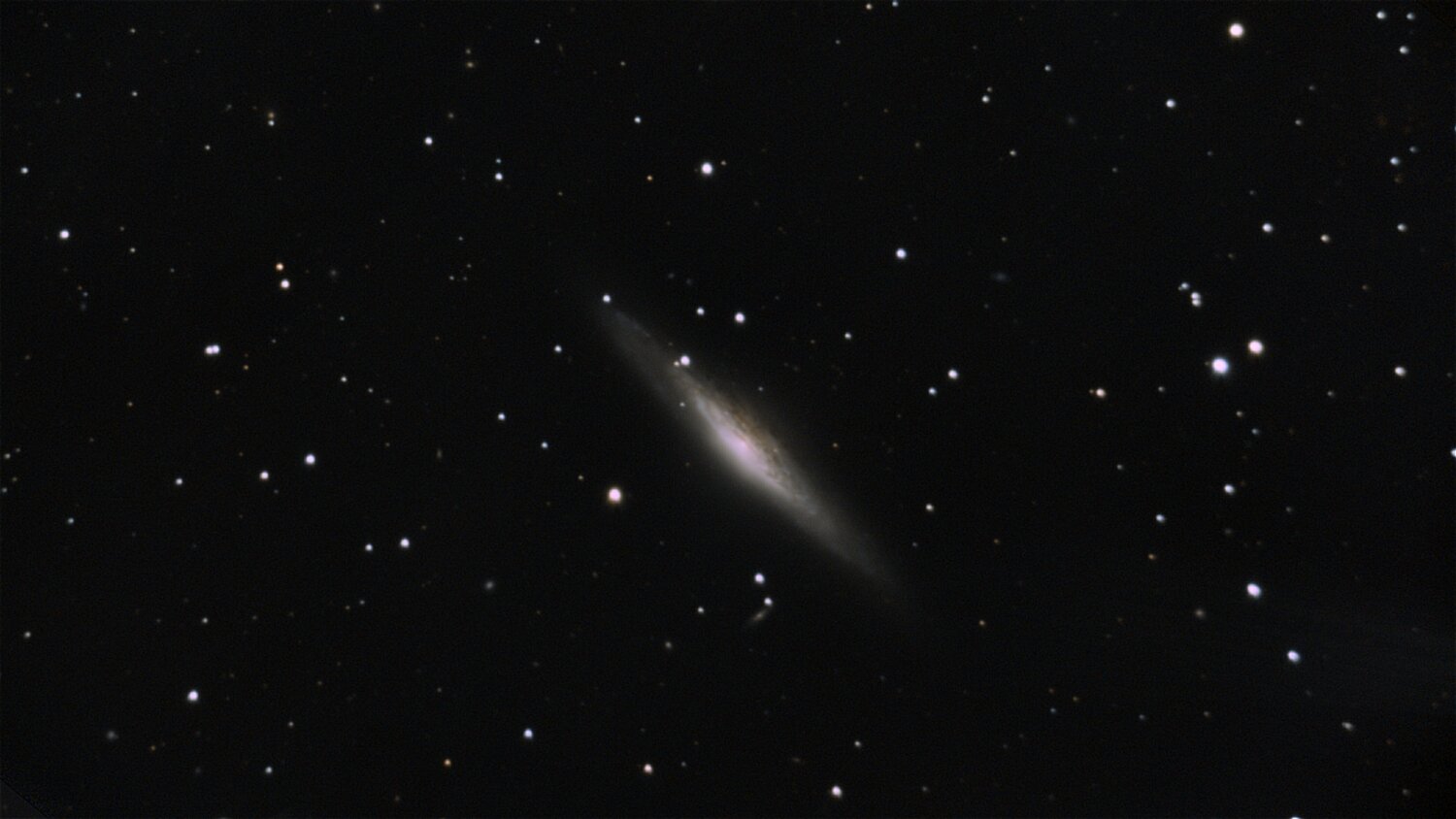 galaxie NGC 3079, une galaxie spirale barrée vue par la tranche et située dans la constellation de la Grande Ourse. avec 50 photos de 5mn chaque empilée sous siril et astrosurface,capture lx90"8 ,asiairplus ,asi2600 ,lâ je ne me suis pas fait avoir avec siril pour le retournement des photos n'importe comment