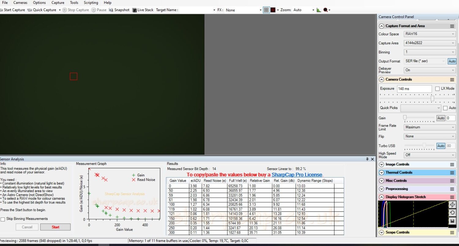 Bonjour. Ok, je suis passé par le sensor analysis, j'ai çà : Ce qui correspond bien à ma caméra (117 de gain recommandé, un peu + devrait me donner 119); mais bon, qu'en fais je ?