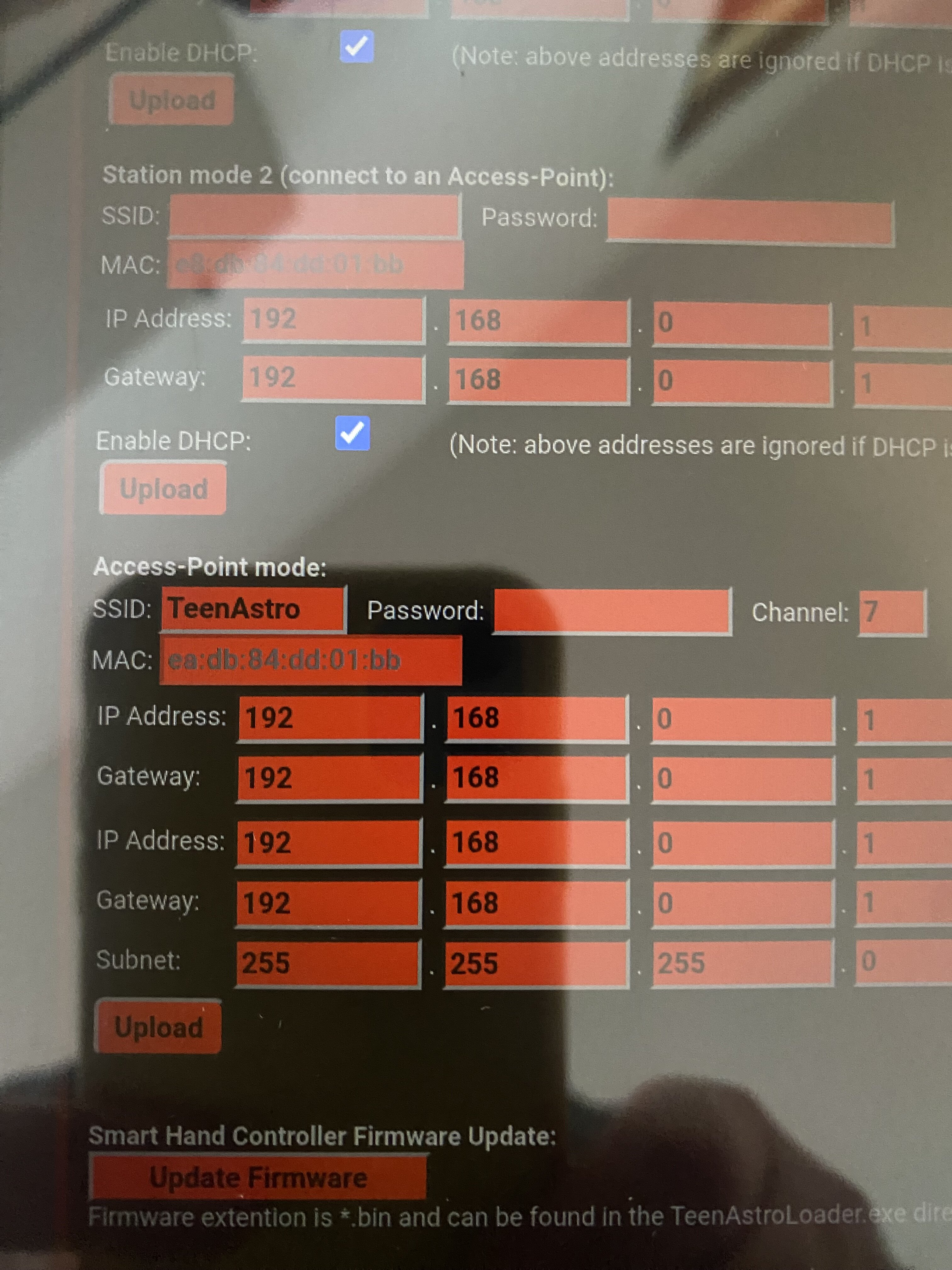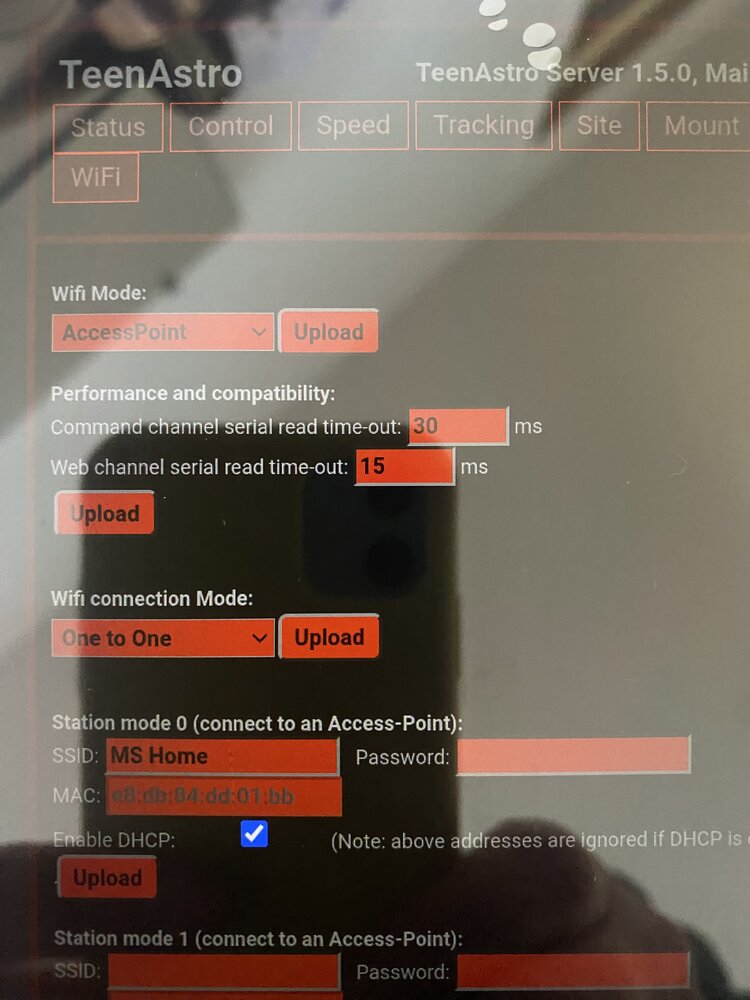 Bon, ce matin, la tablette ne s'est déconnectée qu'au bout de 45 mn. Mon deuxième essai est en route depuis 1 heure et tout se passe bien. C'est la première fois que ça fonctionne aussi bien. Il suffisait peut être d'en parler pour que ça se passe bien. Dans l'interface Teenastro, j'ai choisi ces réglages : Accès point, One to one. Après avoir essayé "Station mode", sans grand succès.