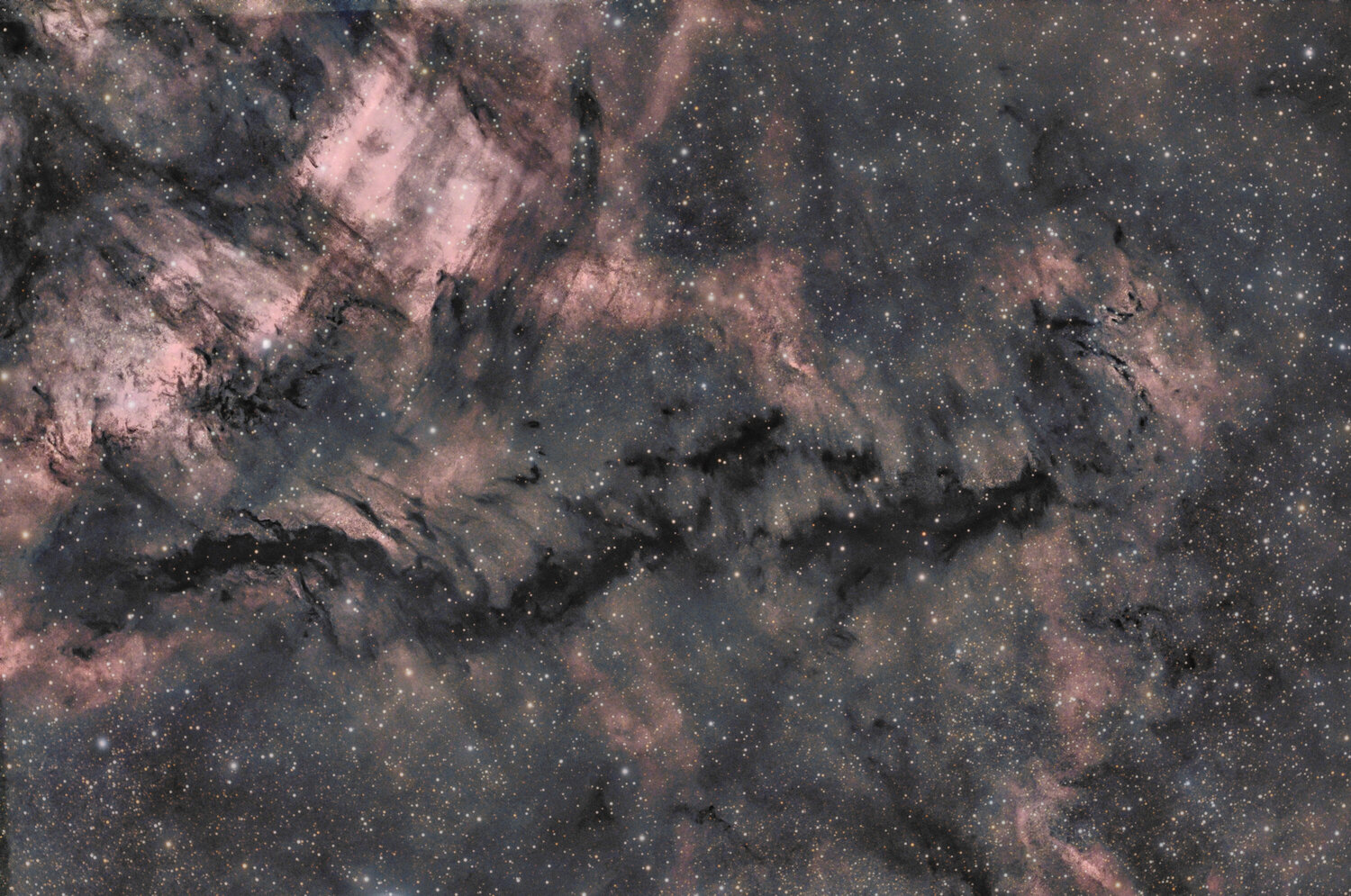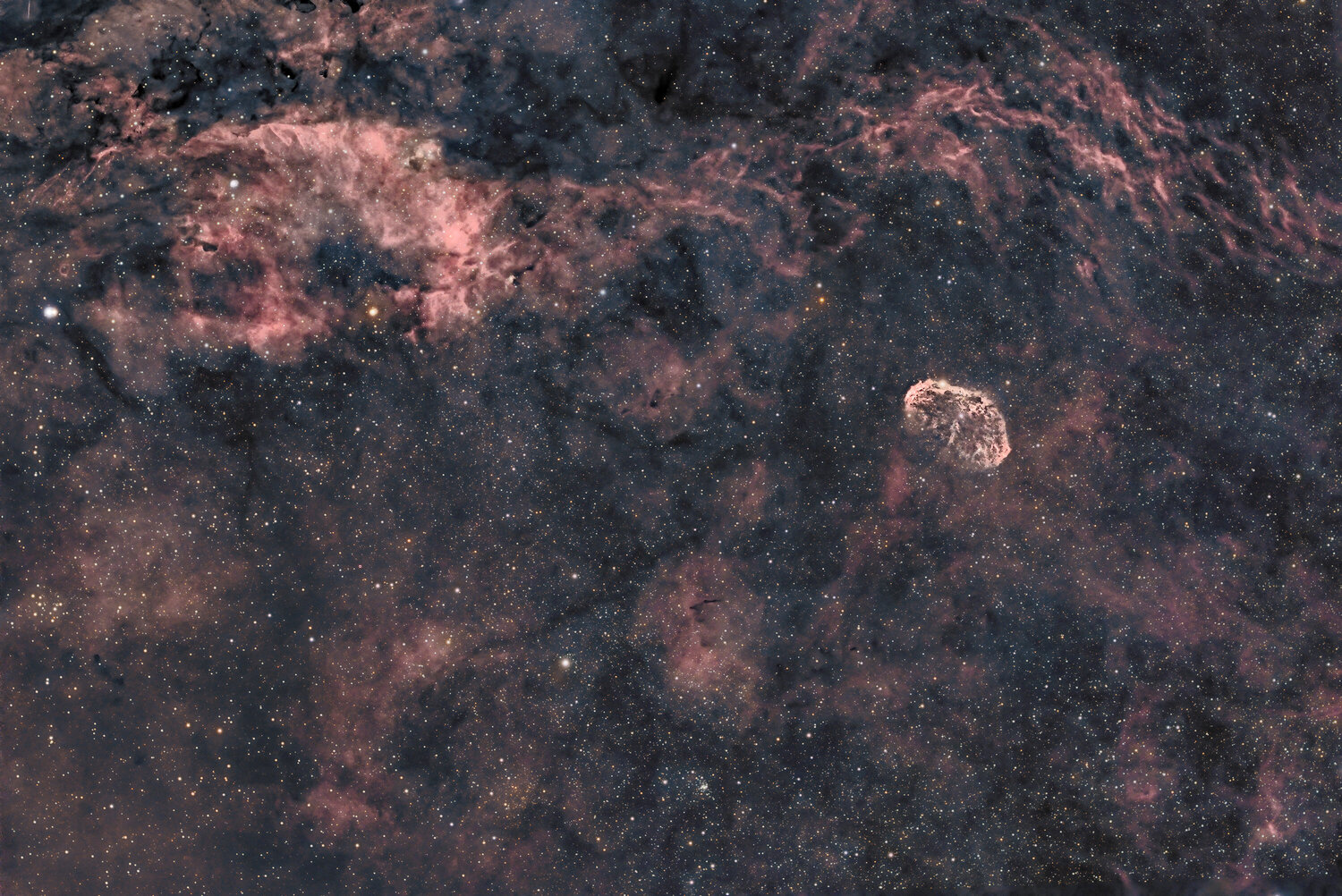 Je continue ma balade dans le Cygne avec la FRA400. Ciel clair, mais FWHM dégueu. Pas mal de déchet, 133 retenues. Poses de 2 minutes, ASI 2600MC. Avec tout le matériel qui dégoulinait de condensation, on se serait cru en novembre !
