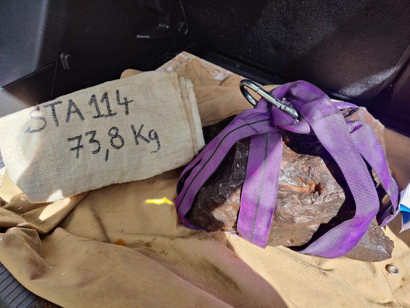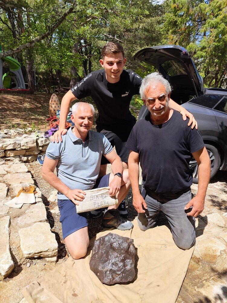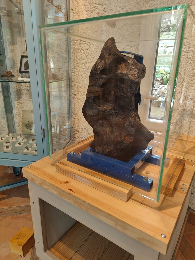 Je vous présente la nouvelle météorite de la salle d'exposition, cailloux céleste arrivé hier en fin de matinée du 16 Mai 2024 à l'observatoire astronomique de BAUDUEN 83630. Cette salle d'exposition est ouverte au public, 5 vitrines contenant diverses météorites sont à vendre et les deux cailloux de l'espace d'une masse de 54 et 74 kg ont été misent sous cloche. Cette nouvelle pièce métallique composée de fer et nickel, fait partie des 7 tonnes découverte par 3 chasseurs de météorites en 2018. Cette météorite s'est fragmenté en 150 morceaux dont le plus massif pèse une demi tonne... Ce bloc complet estimé à environ 2 mètres de diamètre, est tombé en France il y a 50 000 ans. La chute complète a été validée par des chercheurs du CNRS spécialistes de ce domaine scientifique. La première photo vous informe de son numéro et de sa masse. Cette superbe pièce de collection est donc la deuxième exposée à l'observatoire. Une troisième pièce plus massive sera je l'espère accessible au public. Des cristaux de silice ont été déposé dans un bac en acier sous la météorite, afin d'absorber le peu d'humidité se trouvant en permanence sous la cloche en verre. Quand ces cristaux de couleur bleu passeront au rose (chargé d'humidité), je devrais les mettre au four pendant 2 heures afin de les régénérer. Mon ami Alain quo-découvreur de cette chute céleste et son fils m'ont aidé à cette installation. Cette météorite a demandé pas mal de travail à Alain (nettoyage et décroutage). 5 kg de rouille a été retiré au moment du nettoyage. Puis l'utilisation massive du WD 40 a permis de lui redonner sa vraie couleur d'origine. Un entretien régulier au WD 40 sera donc nécessaire afin d'éviter l'apparition de rouille à sa surface. Olivier PLANCHON, fondateur de gestionnaire de l'observatoire astronomique de Bauduen Tél : 06 76 05 96 36 Email : astrobauduen@gmail.com