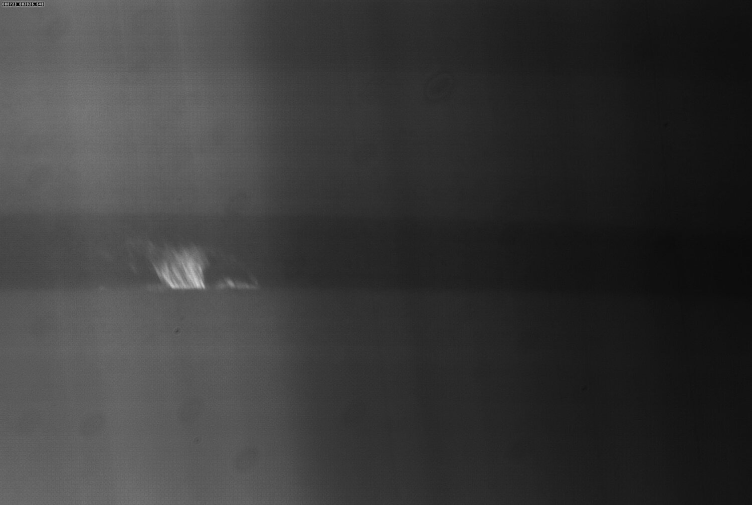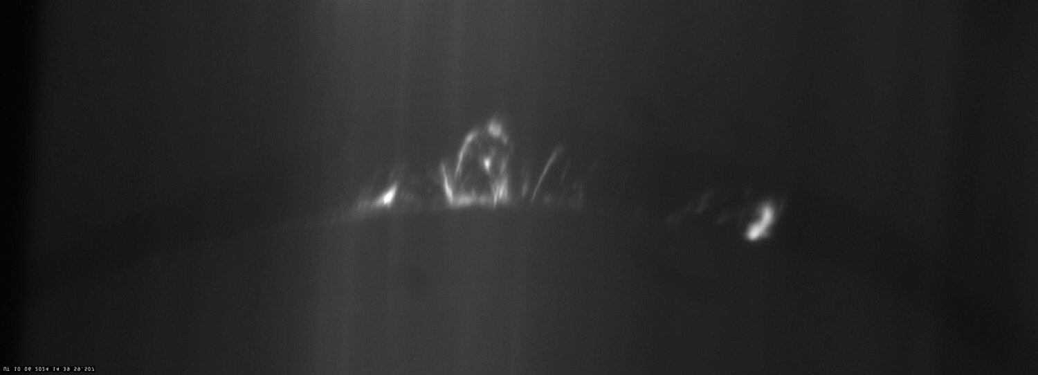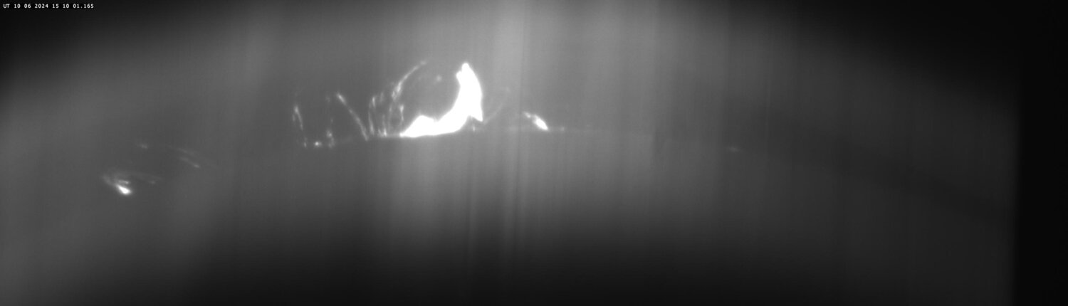 Mode coronographe : j'ai fabriqué une nouvelle fente courbe : le contraste est plus homogène tout le long de la courbure de la fente : Ici avec un réseau 1200 t/mm ; fente 1mm de large pour 12mm de diamètre d'image solaire. -