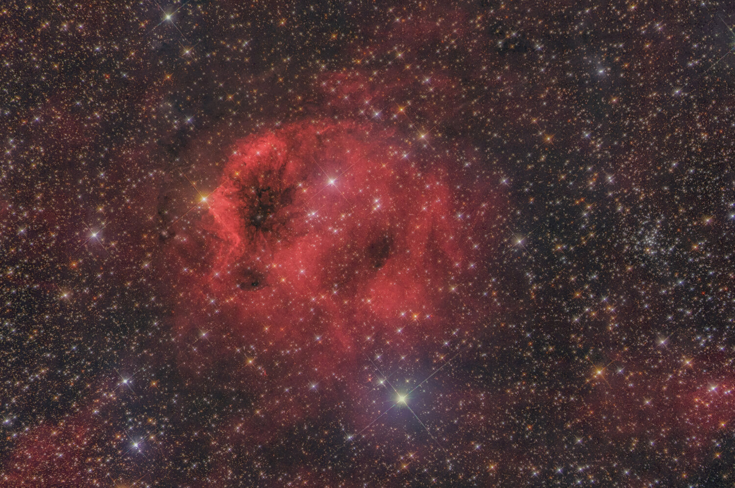 Bonjour à tous, D'ordinaire, pas trop habitué à être sur les différents forums astro (à part pour les petites annonces ) mais plus sur les réseaux et les groupes fb. Je vais essayer d'être un peu plus actif dans les forums Pour commencer, ma dernière photo : Un fantôme pour Halloween ! Cible très peu photographiée, dans la constellation de Cassiopée, j'ai voulu m'y collé sur une nuit pour voir ce que ça donne et j'en suis plutôt content. Même si le traitement pourra toujours être mieux Photo sur une nuit : le 10 octobre 2023 pour 8h55min. Traitement RHaGB Newton 300/1200mm carbon Asi 6200mm mono Eq8 R Pro Filtre Optolong RGB Ha 3nm Rouge : 22x5min Vert 20x5min Bleu 19x5min Ha 23x10min Traitement Siril Pix et PS