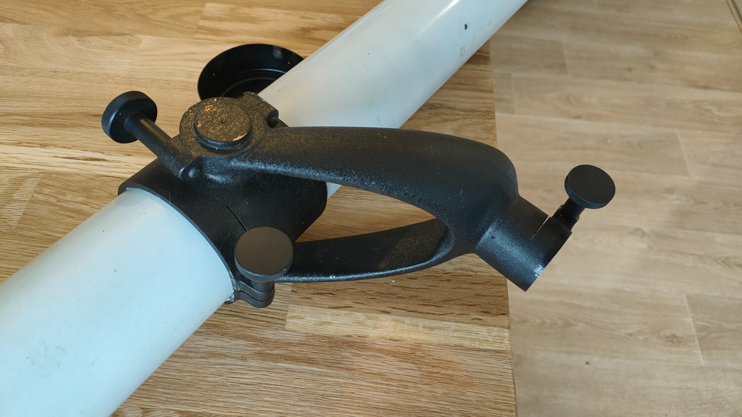 8. Salut J'ai reçu la lunette ouf Seulement la molette de map tordu que j'ai pu remettre droite. C'est une 72mm fd15 a première vu, equipé d'un oculaire terrestre. Mise au point par crémaillère Exactement la même, qu'un modèle qui a été mis dans les p.a il y a quelques années, par un membre du club me semble t'il. Une petite restauration s'impose, l'oculaire ne tiens pas très bien, la feutrine d'origine est a remplacer. Les optiques et le tube a nettoyer. Monture nickel. L'optique est calé a 120°, avec les même cale que sur les petites Vion 50mm (petites cales ronde noir)