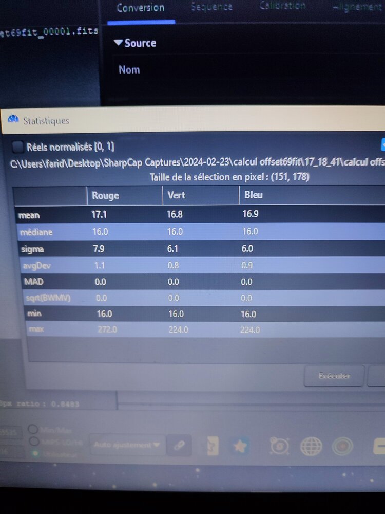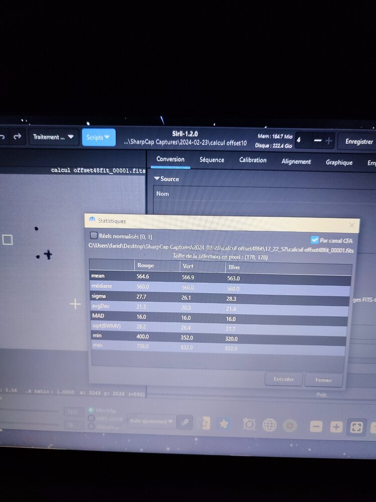 Bonjour le logiciel ces sharpcap mon gain unitaire et 480 bonne journée