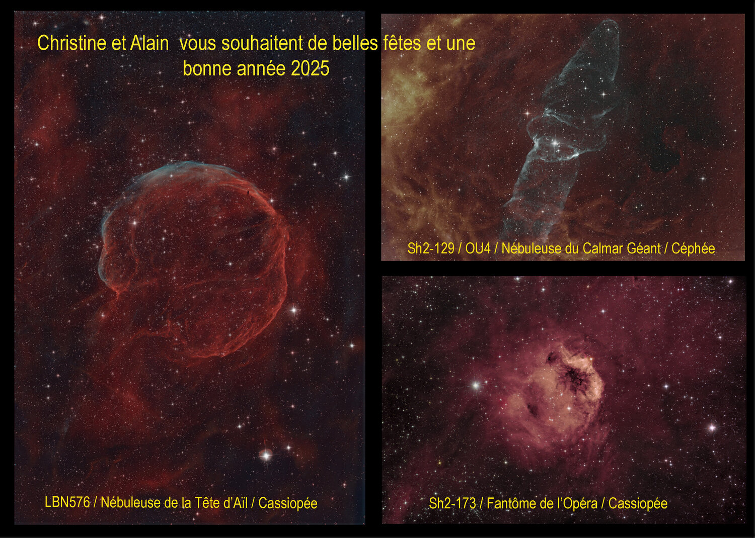 12. Bonsoir, J'associe plutôt la Méduse à IC443 On appelle LBN576 , Medulla nebula, Popped balloon nebula, ou encore Nébuleuse de l'Aïl.......ça pique (fastoche également)😉. Ton commentaire me fait plaisir, merci. Alain