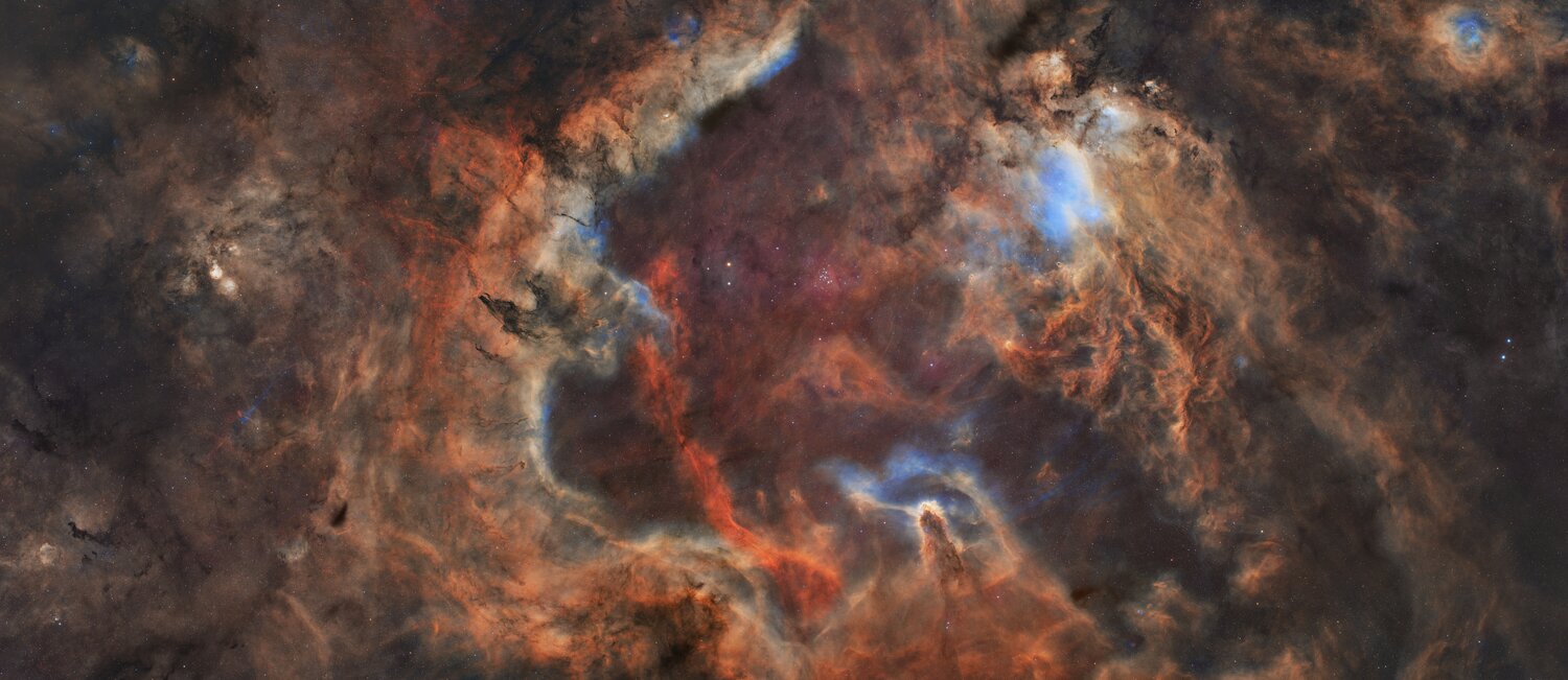 Bonsoir tout le monde, Je vous présente cette nouvelle image réalisée en remote, depuis mon setup installé à la Hacienda des étoiles au Chili. IC4628 Prawn Nebula Cette mosaïque révèle l’immense nébuleuse par émission IC 4628, plus connue sous le nom de nébuleuse de la Crevette, située dans la constellation du Scorpion, à environ 6 000 années-lumière de notre Terre. L’image est composée de quatre tuiles, pour un total de 196 heures d’intégration, et couvre un champ d’environ 9° × 4°. Réalisée en palette SHO, j’ai tenté de rééquilibrer les couleurs afin de proposer un rendu proche du RVB naturel. L’objectif était de mettre en valeur les subtiles transitions de couleur offertes par le SHO, tout en conférant aux structures dominées par le SII leur apparence ardente. Rappel du setup : AP Mach2 - FSQ106 Edx4 - ASI6200 - Filtres ASTRODON LRGB-SHO Lien Astrobin pour accéder a la pleine résolution : https://www.astrobin.com/qlm6sa/ En espérant qu’elle vous plaise Malik