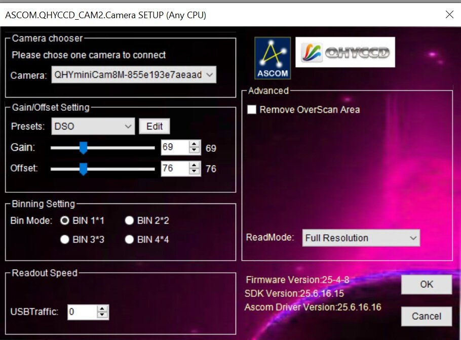 Hello les amis, Je viens de me rendre compte que ma cam est probablement couverte de buée. Je ne vois aucune option d'activation de l'anti-buée et pourtant j'ai l'impression que celui-ci n'est pas automatique. Je l'utilise avec le pilote ascom et SGP. Voyez mon screenshot du pilote. Rien sur l'anti dew. Quelqu'un sait comment on peut l'activer ? Merci d'avance -