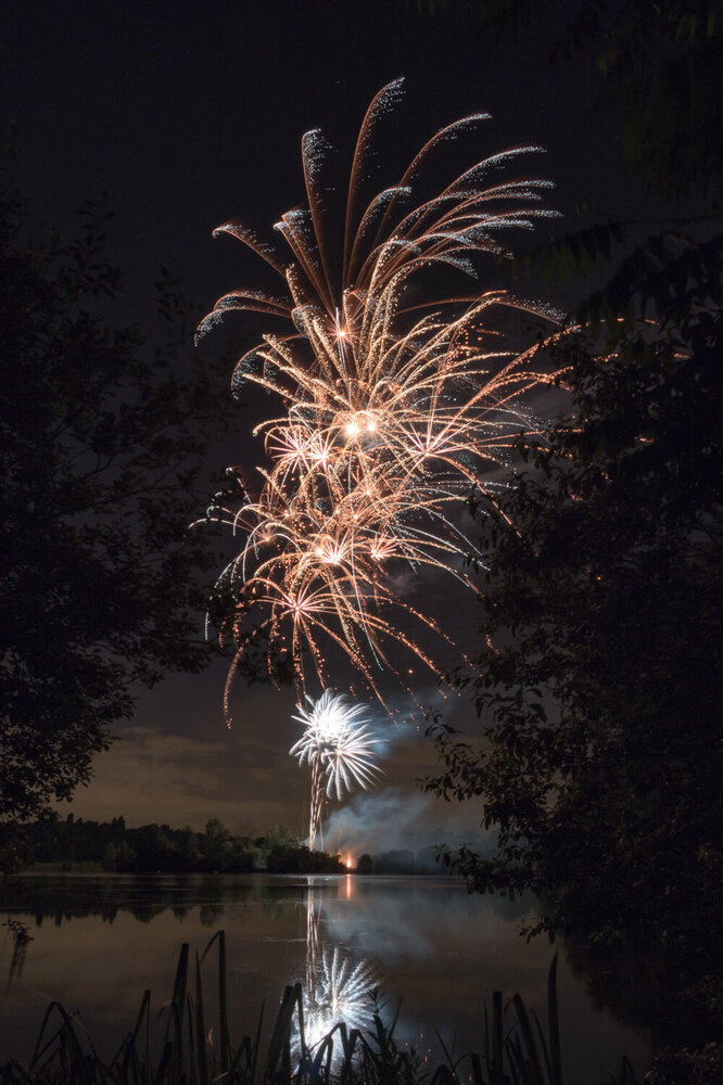 Je l'ai prise le soir du 14 juillet, pas depuis Juvisy, mais 60km plus au sud à la limite des départements 77/91/45, un coin tranquille où je vais régulièrement (quand la meteo est bonne donc pas si souvent) Vu que nous somme voisins, une petite anecdote en cette période de fête nationale... Le soir du 13 juillet j'avais prévu une sortie astrophoto, la météo 3 jours avant semblait favorable, arrivé au samedi finalement temps couvert, j'ai changé de plan au dernier moment pour aller photographier le feu d'artifice de Viry (une catastrophe, temps pluvieux, arrivé sur place trop tard, trop de monde, mal placé, géné par des arbres, bref soirée nulle). J'aurais dû retourner shooter le feu d'artifice de Draveil, comme il y a quelques années (échantillon ci dessous, il y avait aussi des arbres mal placés, mais moins gênants) EDIT: APN Canon 80D Objectif Canon 18-135mm à 18mm 100 ISO, f/11, pose unique de 7 secondes -