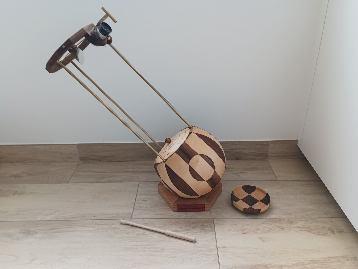 Bonjour, Une personne étant tombée sur mon site web m'a demandé de lui faire un télescope similaire a mes 114*500 boule (https://sites.google.com/view/brebisson/home/114450-boule-v1)... mais en 150.... Voici la chronique de la fabrication! Comme je le fait souvent dans un tel cas, je fabrique tout en double... Dans le meilleur des cas, j'ai 2 télescopes au final... Dans le pire des cas, j'ai un plan B et je n'ai pas a tout refaire... Et comme le temps passé a faire 2 telescope n'est que d'environ 20 ou 30% de temps en plus par raport a un telescope unique... ca vaux le coup! 1: on trouve du bois: 5cm d'epaisseur de noyer et d'erable: Beaucoup de préparation et de coupe... et j'ai la base du matériel dont je vais avoir besoin 2: On prépare les choses et on commence a coller! 3: Ce projet vas utiliser au moins un pot de colle entier!!!! Mais les choses prennent forme... 4: on passe au tour!!!! 5: Et voila, une boule de finie... Une autre en devenir... 6: Merde! J'ai explosé une de mes boules!!!! Il y a très peu d'espace entre ne trou interieur pour le contrepoid et l'exterieur de la boule... Et j'ai dut mal calculé! Resultat, boule explosée ;-( Je vais voir plus tard si j'arrive à réparer cela avec un bouchon... En bas de la photo on voit le contrepoid que j'ai coulé en plomb.... 1.5kg tout de meme!!!! 7: Et voila 2 boules pratiquement terminées. Avec l'anneau qui servira à tenir l'araignée et la future base... La suite au prochain numéro lors de mon prochain passage à mon atelier... Cyrille