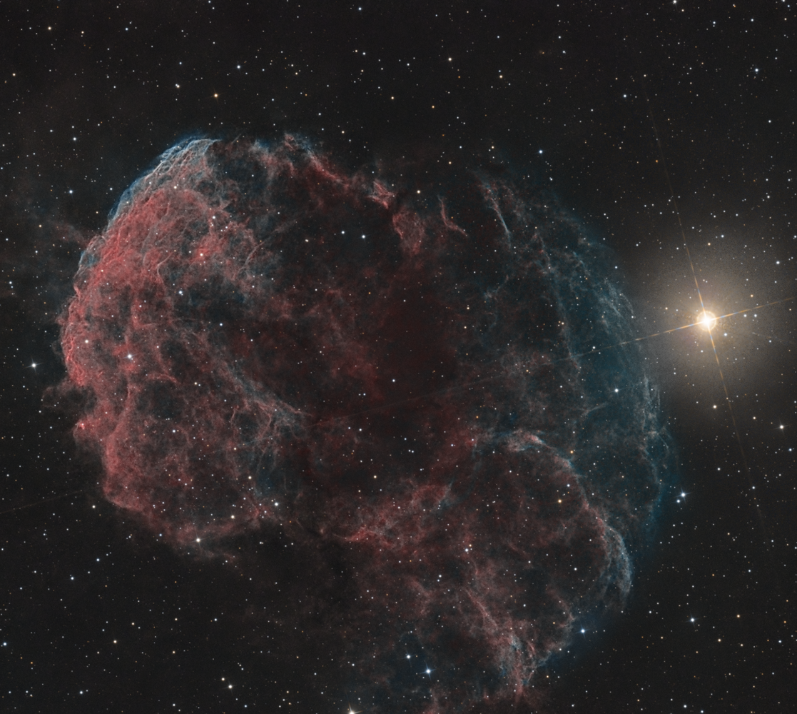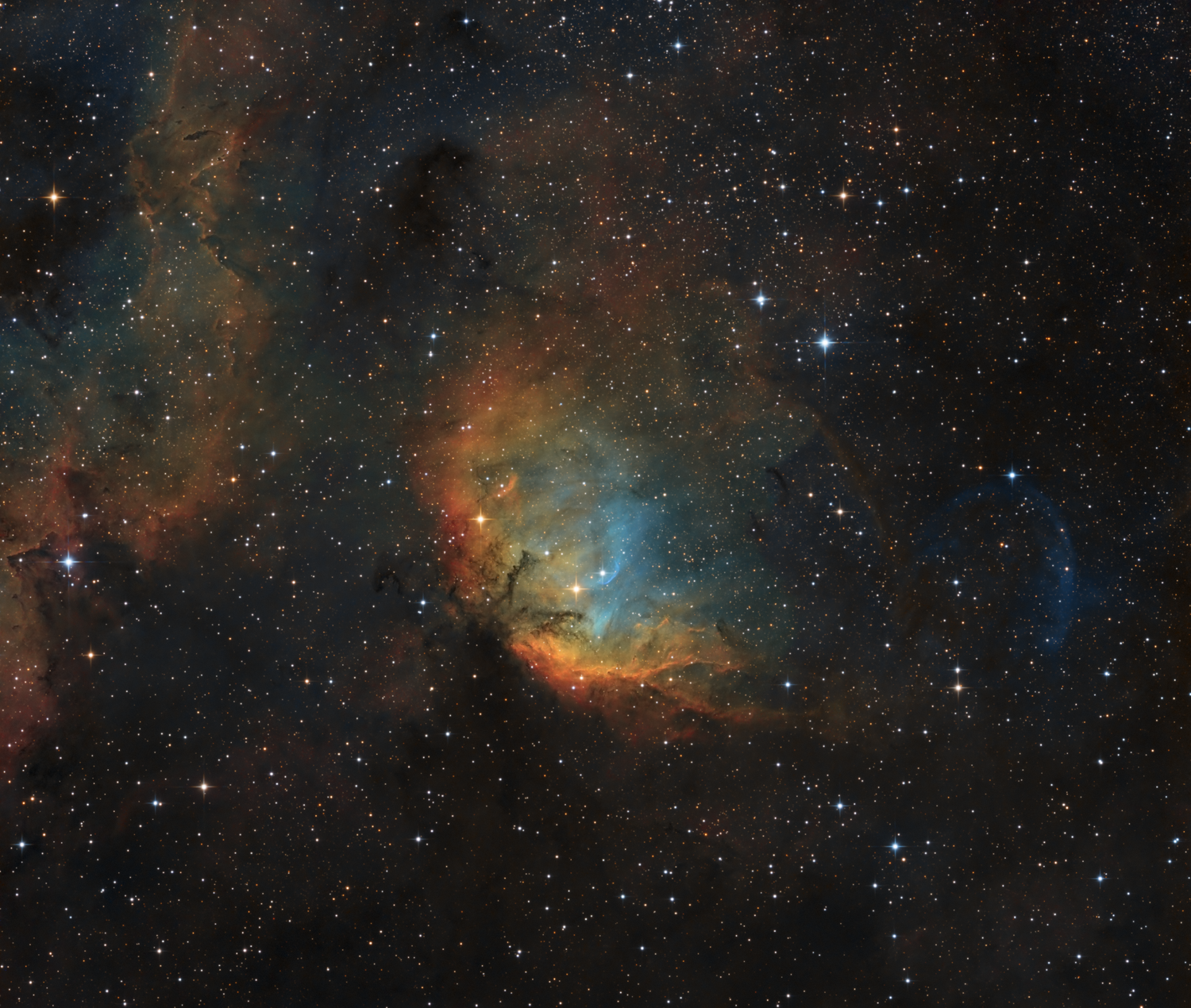 Hello ! Voici mon dernier projet de cette période de nouvelle lune - plutôt clémente en termes de temps ! Le OIII et le HA ont plutôt bien joué leur rôle et son bien délimités sur cet objet, permettant de donner une palette bien vibrante à mon gout Intégration Rouge (R) : 30 poses de 60 secondes, total 30 minutes Vert (G) : 30 poses de 60 secondes, total 30 minutes Bleu (B) : 30 poses de 60 secondes, total 30 minutes Hα : 224 poses de 300 secondes, total 18h40 SII : 60 poses de 300 secondes, total 5h OIII : 60 poses de 300 secondes, total 5h Total : 30h10 Équipement Télescope : Sky-Watcher Explorer 130PDS Caméra : ZWO ASI533MM Pro Monture : Sky-Watcher EQ6 Pro Filtres : Antlia 3nm Narrowband H-alpha 1.25" Antlia 3nm Narrowband OIII 1.25" Antlia 3nm Narrowband SII 1.25" Antlia V-Pro R, G, B 1.25" Accessoire : ZWO ASIAIR Pro