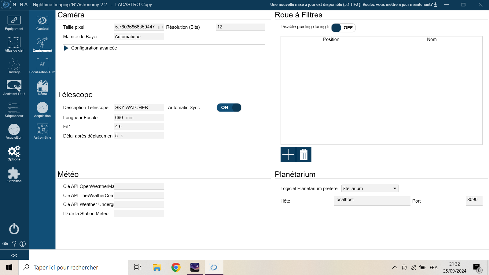 bonsoir j'ai bien renseigné NINA et j'ai peut être activé le plugin je pense, je choisi une étoile sur stellarium je clic sur obtenie les coordonnées du planétarium mais cela me donne toujours le même astre quelque soit l'étoile choisie . je remarque lorsque je reviens dans stellarium /configuration/plugins je ne sais pas si je l'ai activé ?
