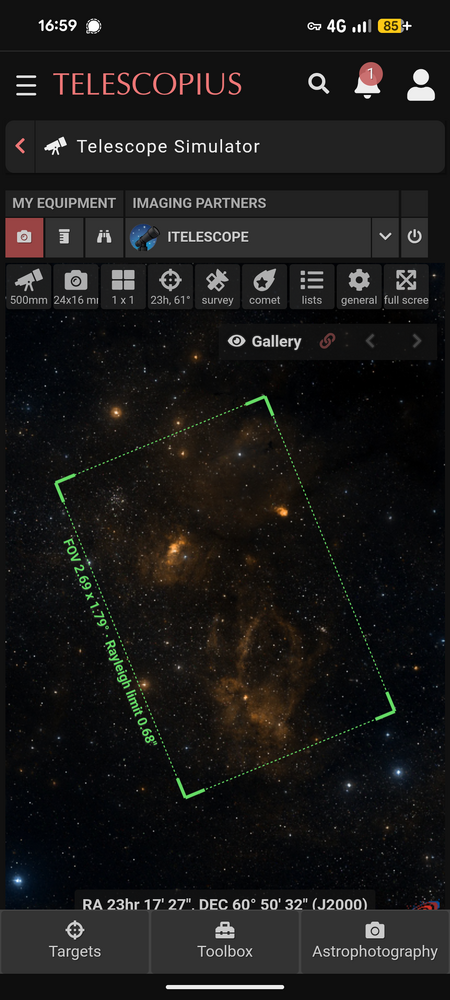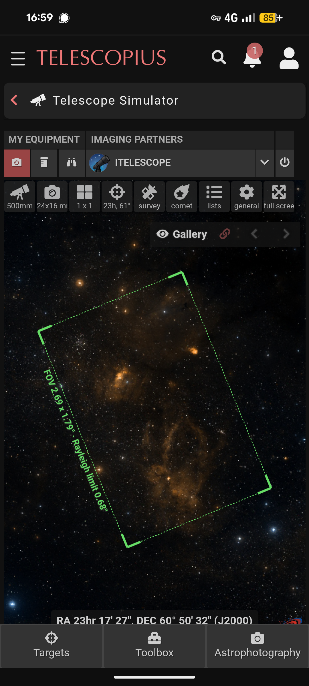 2. Salut tout l'monde, La venue du Black Friday et des remises Zwo me refont un peu du pied. Actuellement équipé d'une 533MMpro, j'me tâte comme un blaireau à investir dans une 585. Le but : gagner en résolution. Maintenant est-ce que le fait de passer de pixels de 3,76 à 2,9μ changera clairement la donne au rendu final ? Mathématiquement 1,7x ,mais seeing et compagnie sont de la partie aussi. Perf à priori quand-même moins bonnes : bits, DR, FullWell..... Matos sur lesquels elle serait montée, avec échantillonnage vs 533 : FSQ85 : 455mm ( 1,31 vs 1,70) Askar 103 : 700mm ( 0.85 vs 1,10) Voili voilou, Merci pour votre avis 🤘