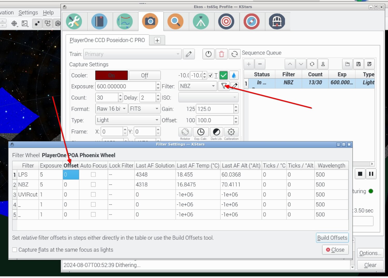 salut tu veux dire de lui donner un offset pour chaque filtre ??? si c'est le cas tu peux aussi lui demander de les générer automatiquement sinon voici comment renseigner les offsets dans ekos mais perso je te conseille quand même de refaire un autofocus à chaque fois avant de lancer une séquence de prise de vu cdt