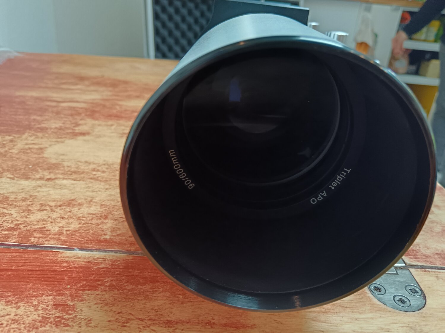 C'est une TS Optics triplet Apo 90/600 ( en tout cas, c'est ce qui est écrit dessus 😁), avec un fly.