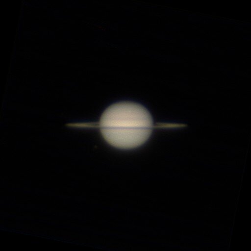 Bonjour, Levée tôt ce matin pour rafraichir toute la maison, arroser le potager et faire un peu de planétaire avec SATURNE. Proche ANGERS, le 1er AOUT 2024 à 05H00. Matériel : HEQ5 PRO GOTO C8 EDGE Barlow Télévue x2,5 Filtre UV IR CUT Caméra Datyson T7C Gain 90% Shutter 100 ms Gamma OFF Iimages 2028 Traitement : AUTOSTAKKERT 75% REGISTAX Bon ciel.