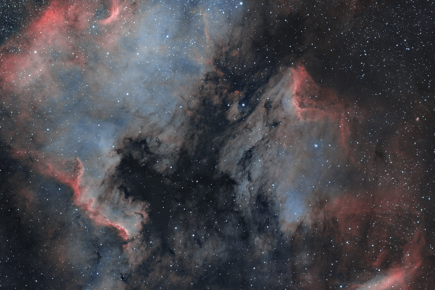 Bonjour à tous, amis Astrams ! Après NGC 7000 seule, j'ai cette fois-ci fait un panneau pour l'associer à la nébuleuse du pélican. Voilà ce que ça donne. Le traitement est un peu plus fort, mais j'aime bien. Qu'en pensez-vous ? Merci de votre passage. Askar FRA 400 sur EQ6 R Pro, ZWO ASI 533 MC, autoguidage avec ASI 224MC sur lunette SV Bony 60/200 2x63 x 180s à gain 100 avec N.I.N.A. et filtre Optolong L-Extreme +20 DOF