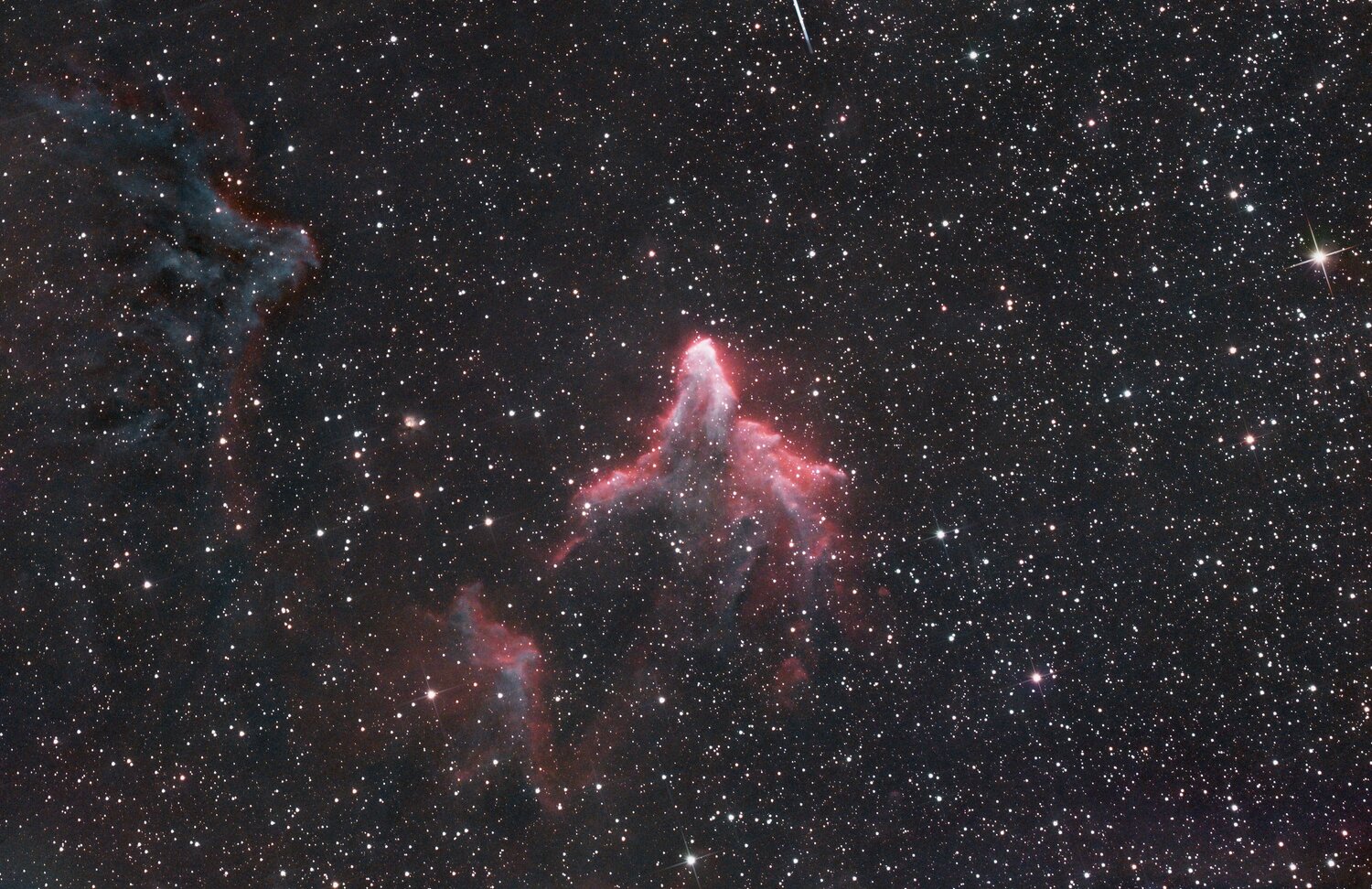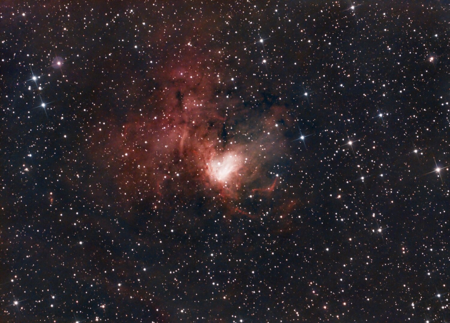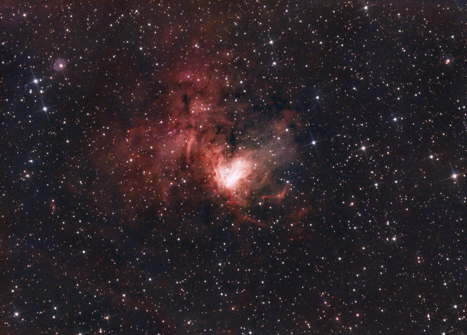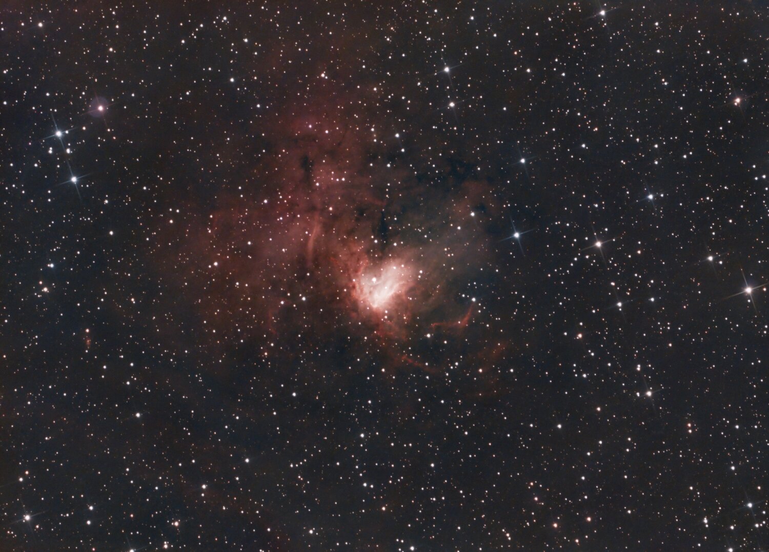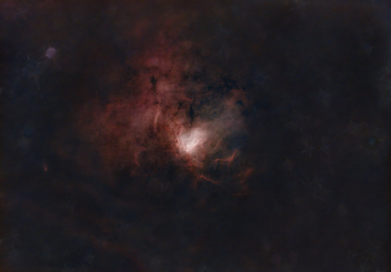 Salut à tous, Après plusieurs séances: A galérer avec mes flats , Galérer avec le suivi ( c'est bon j'ai commandé une révision chez Pierrot ) , Me rendre compte que la lulu de guidage avait une partie du film qui se décollait … = changer par une lulu sous dimensionnée Me rendre compte que je n'avais pas toute la nébuleuse comme je le souhaitait dans l'image, J'ai enfin réussis à empiler 422 poses de 60 secondes, entre les passages nuageux Je me suis essayé sur IC 63 mais j'avoue que c'est compliqué au traitement et au shoot à cause de la grosssssssssse étoile juste à coté Le Matériel : EQ6R Pro ASI294 MC Pro ,Gain 120, Offset 30 Astroberry : dithering auto PHDD2 250/1200 + Baader 2" Correcteur de coma MPCC Mark III + masque de chanfrein Zwo focuser Bortle 5 Guidage Zwo asi mini + lunette guide 50/180 Filtre Altair L-Pro Traitement que j'ai simplifié GraXpert Pix : Photometriccolorcal EZsoftstreatch Histogram Curves Réduction d'étoiles Bill V1 (0.30) Photoshop : courbes et niveaux + NoiseX (60/40) Place à la photo : V2 : avec les curseurs moins poussés sous noise X et sur les curves : Je me retenterais sur cette cible lorsque je serais passé sur un 200/800 A+ Nico. Bon ciel à tous.
