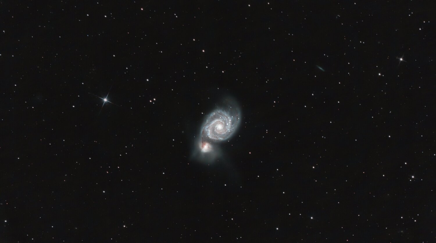 Salut à tous, Un grand classique que je n'ai jamais fait avec cette focale. Pour continuer le réglage de la monture je me suis attaqué sur deux nuits à M51. J'ai toujours des dents de scies sur mon suivi mais au moins j'ai un suivi 🤣 Je tâtonne avec le réglage du serrage des VSF, mais je tourne à 0.45 0.60 rms en total. Ce matin au réveil je regarde mes flats et bizarres... (je vais voir le télescope, de la buée sur le secondaire ) obligé d'attendre le réchauffement climatique pour refaire des flats, mais j'ai du user du clonestamp...) Le Matériel : EQ6R Pro Canon eos 6d réglé à 800 Isos, Astroberry : 461 lights de 60 sec sur 2 nuits , dithering auto PHDD2 250/1200 + Baader 2" Correcteur de coma MPCC Mark III + masque de chanfrein Zwo focuser Bortle 5 Résistance chauffante usb pour chaque lulu Guidage Zwo asi mini + lunette guide 80/400 Traitement : GraXpert Pix : Photometriccolorcal EZsoftstreatch Starnet Color sat sur RVB Histogram Curves Extract L AWT et convolution pour floutage sur RVB HDMRT sur L LRVB combin Photoshop : courbes et niveaux + NoiseX (70/35) Place à la photo : Bon ciel à tous ! A+ Nico