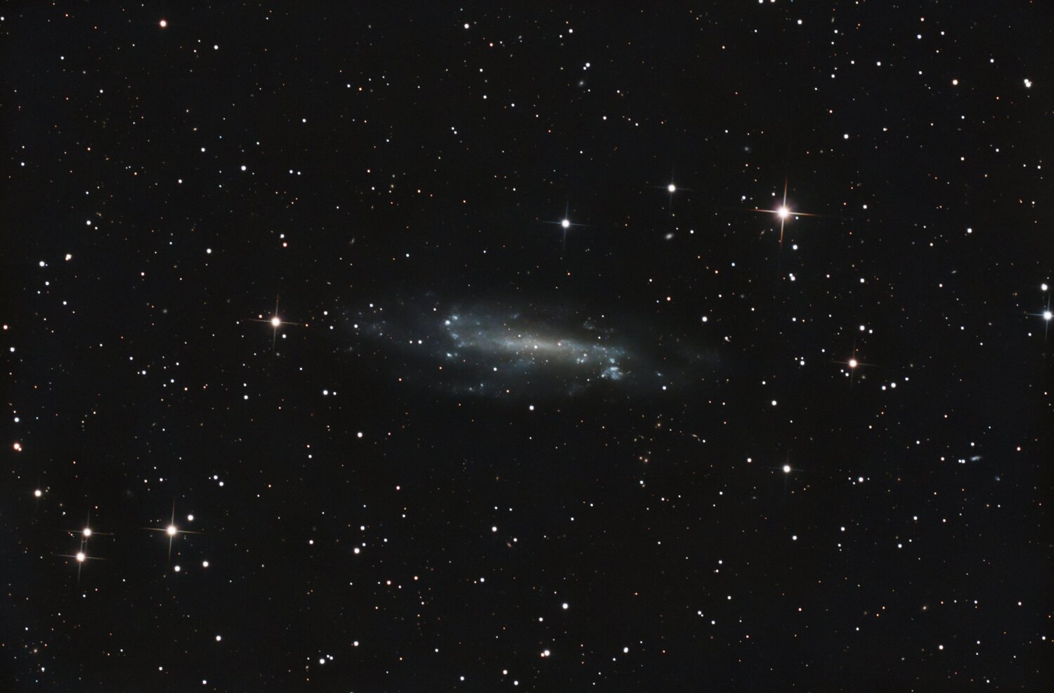 Salut à tous ! Voici le shoot n°37, avec cette fois-ci une belle balade dans la constellation du Dragon : cap sur NGC 4236, une galaxie spirale barrée vue de profil, longue, fine et pleine de charme, qui s’étire paresseusement dans un coin peu peuplé du ciel. Ce qui m’a séduit ? Sa forme allongée, comme une trainée de lumière, et ses faibles extensions spiralées qu’on devine en posant longtemps. Elle fait partie du Groupe de M81, mais se la joue discrète dans son coin, à plus de 11 millions d’années-lumière. Un vrai serpent cosmique, glissant lentement entre les étoiles. 🔭 Infos techniques : Cible : NGC 4236 (galaxie spirale barrée, magnitude ~10.5) Setup : EQ6R Pro Mini PC avec NINA dithering toutes les 3 poses 250/1200 + Baader 2" Correcteur de coma MPCC Mark III + masque de chanfrein Zwo focuser ( Focus à la mano, je viens de recevoir mon GEMINI focusser au petit matin ) Bortle 5 Guidage Zwo asi mini + lunette guide 50/180 Filtre Altair L-Pro Caméra : ASI 294 MC Guidage : PHD2 Acquisition : 380 x 120s = 12h40 de pose Traitement : Sirilic (empilement), Pix, Photoshop - Histo K=25 , curves, NoiseX 65/30 📷 L’image : Qu’en pensez-vous ? Des retours, des conseils ? Toujours preneur pour progresser 🚀 Bon ciel à tous 🌙 A+ Nico
