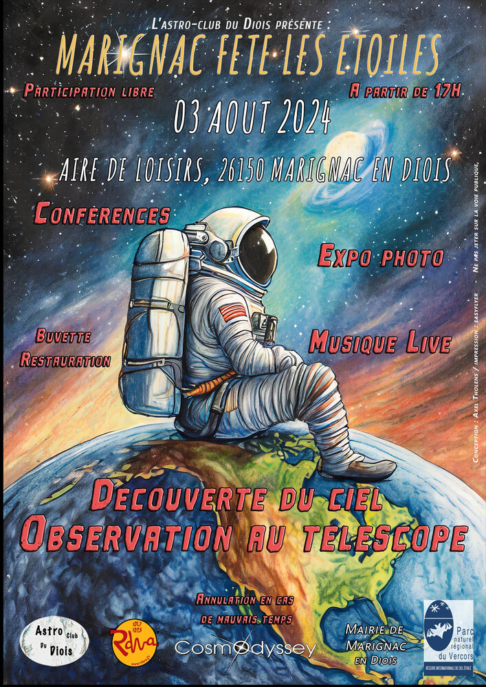 Chaque année nous organisons avec mes amis et collègues de l’Astro Club du Diois une soirée festive et grand public autour de l’astronomie. Des conférences, des spectacles, de la musique mais surtout de l’astronomie !