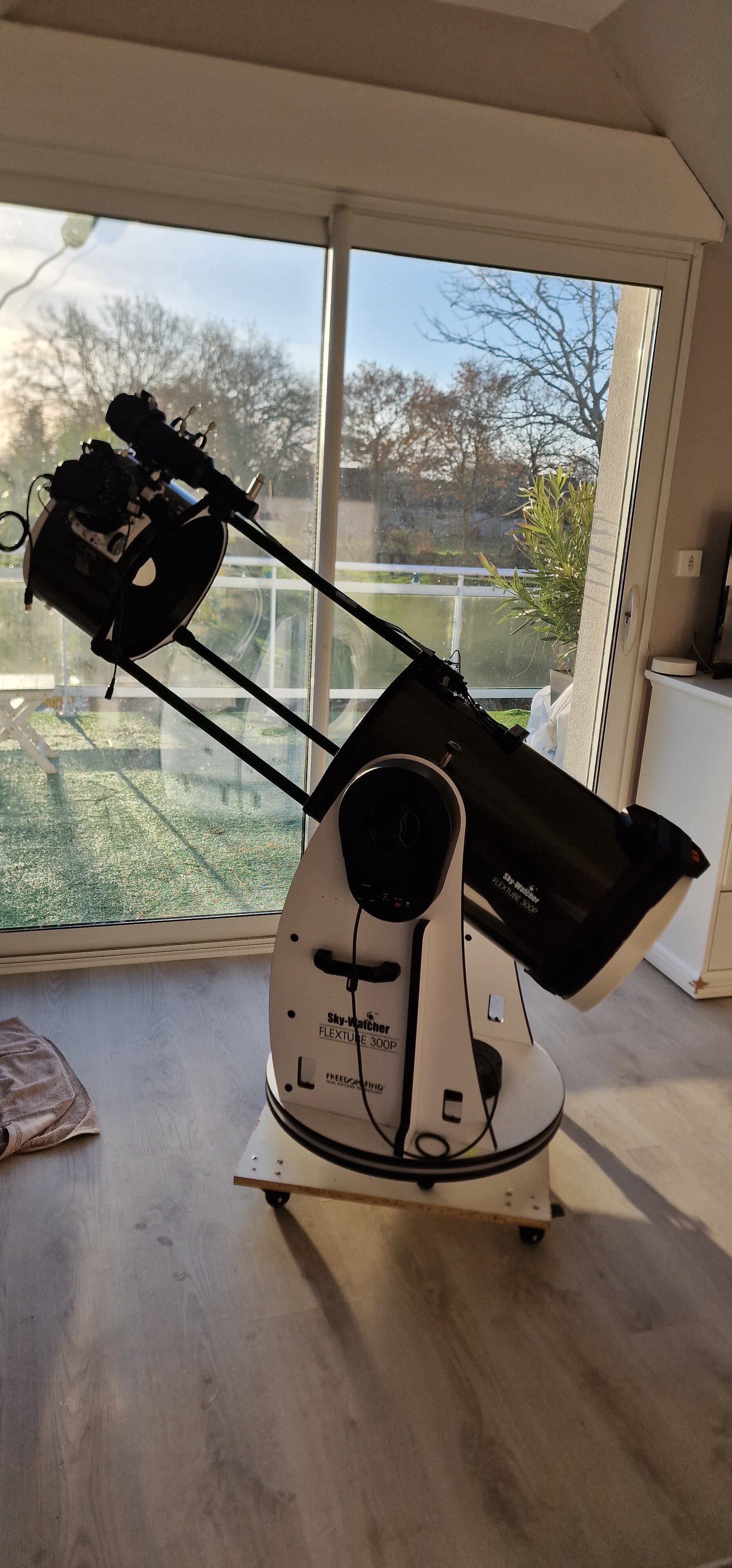 1. Bonjour, je possède un sky-watcher dobson flextube 305/1500 goto, avec un gros chercheur et un APN, ce qui me fait un poids d'environ 1k200 a l'avant, j'ai mis un contrepoids à l'arrière mais j'ai toujours un problème du suivi, y a-t-il une façon de mètre le poids ou y a-t-il un autre problème ? Merci bien à vous