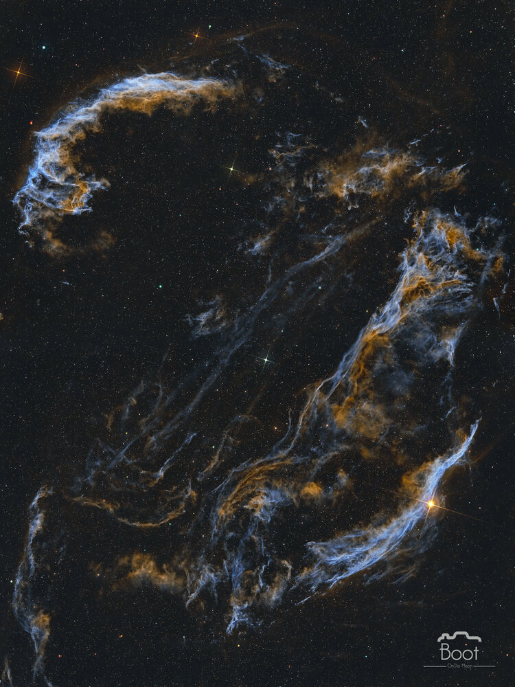 Salut! mon premier post photo ici (mea culpa, j’y avais jamais songé 😅), Après bien des efforts, commencée la nuit du 28 mai (puis 28/06, 06/06, et 11/07!), voici ma toute première mosaïque de 2x1, les dentelles du cygne étant bien trop grandes pour entrer dans le champ. Travail de longue haleine donc, qui se termine ce matin, à l’instant même où je reçois la nouvelle caméra 😁 Dentelles du cygne, rémanent de supernova apparu il y a environ 10000 ans, et situé à 1440 années lumière. 67x180sec (3h20) par panneau pour les nébulosités, 80x30sec par panneau pour les étoiles. 94edph-asi294mcp-antlia AlpT-Lpro-heq5-Asiair+ Traitement HHO sur pixinsight Strasbourg bortle 8