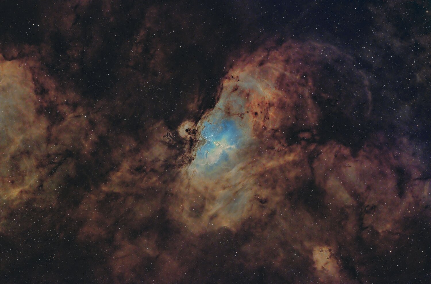 Salut! une petite nouvelle, Prise depuis mon balcon 2h par nuit pendant 6 nuits, voici ngc6820, nébuleuse à émission située dans la constellation du petit renard à quelques 6800 années lumière. En voyant les images brutes de 300 secondes, je ne pensais franchement rien en tirer, mais finalement… 🥳 j’ai enfin percé le mystère de ces couleurs rouge sombres 😁 reste à trouver pour les bleu sombres…si quelqu’un a des indices ou courbes a ce sujet, perso je tombe toujours sur des bleu turquoise, cyan… mais jamais je n’arrive à atteindre les marines bien sombres hélas… Merci d’avance! Ngc6820/ngc6823, 94EDPH, asi2600mcp, filtres AlpT et Lpro, Heq5. AlpT: 70x300sec+140x180sec (12h50) Lpro (étoiles): 120x60sec Strasbourg bortle8 le résultat, et une brute de 300s,