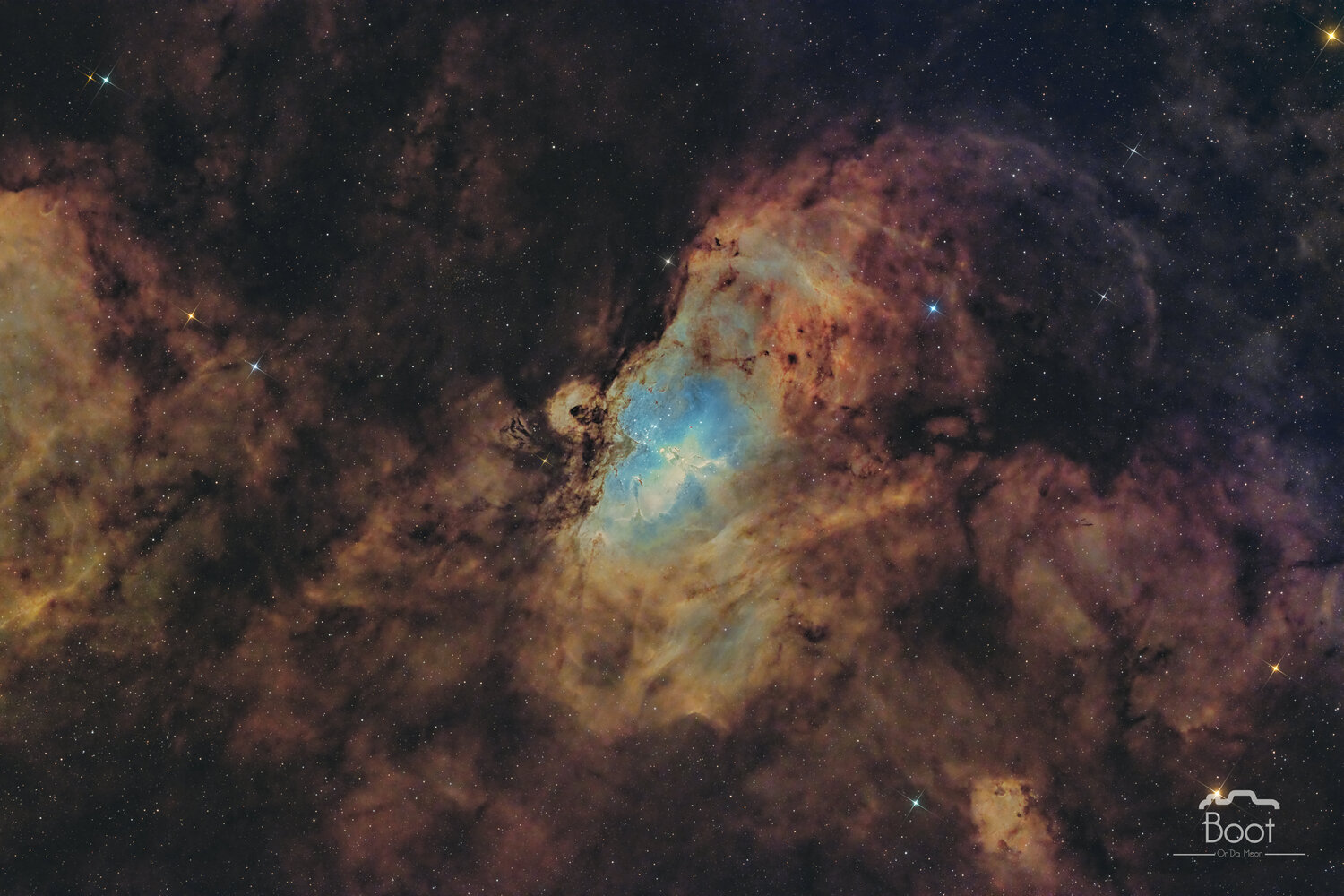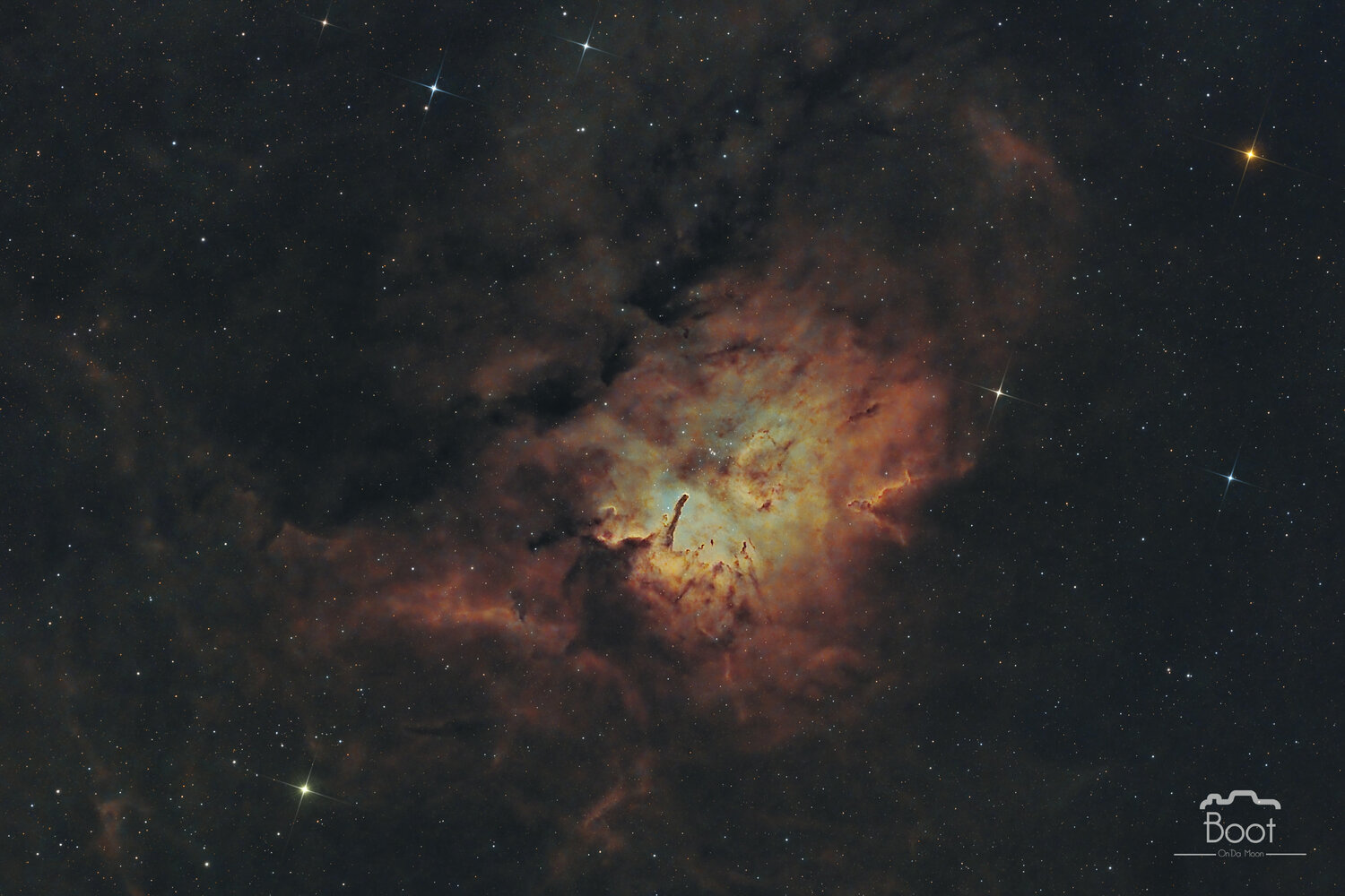 Salut! une semaine de beau temps, une cible très basse dans le ciel, entre 15 et 10 degrès, au cœur de la pollution lumineuse, et disponible 1h30 chaque soir depuis une terrasse couverte orientée ouest, un cumul de plus de 10h de poses, et finalement, je les ai les Piliers de la Création 😁 le traitement a été laborieux, mais suis content (je crois) du résultat. Je n’ai pas forcément obtenu les couleurs que j’aurais souhaité, mais j’aurais fait de mon mieux du (petit) haut de mes 15 mois de pratique 😁 M16, nébuleuse de l'aigle et Piliers de la Création, 94EDPH-Asi2600mcp-filtres Antlia alpT et Lpro-HEQ5-Asiair. AlpT:150x180s-50x300s Lpro: 80x60s (étoiles) traitement pixinsight. Strabourg bortle 9 dans cette zone du ciel -
