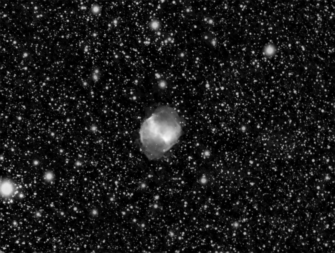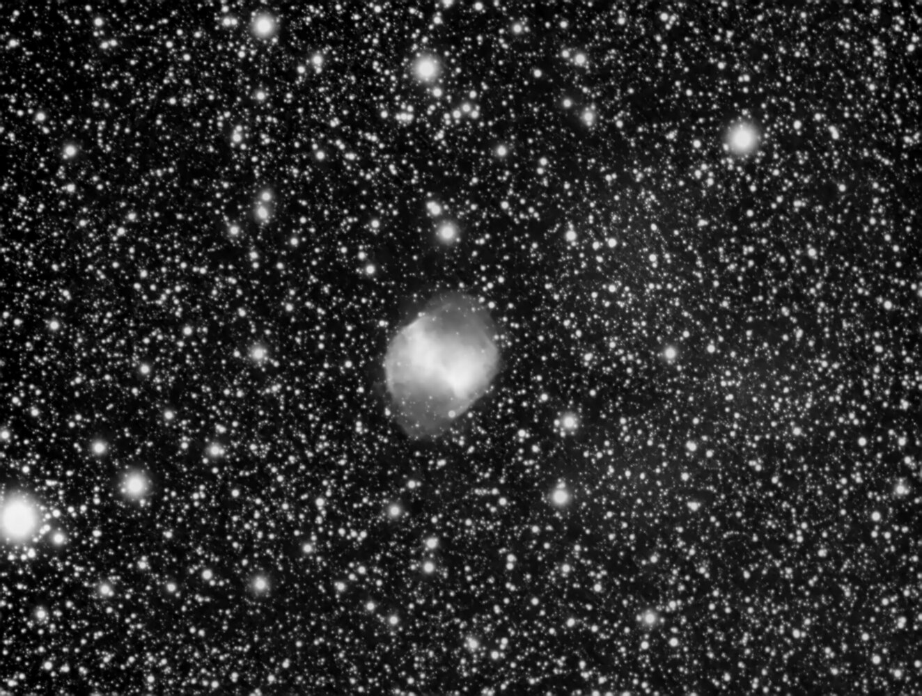 La seconde image était un peu pour le fun. Cela ne fait pas très réaliste. Cela dit, je me demande pourquoi sur la première version (réelle) mais étoile ne sont pas plus "jolie". Oui j'ai fait une passe de déconvolution avec Siril. Mais la "tête" des étoiles semble un peu baveuse. Ne serait-ce pas un soucis de chromatisme de la lunette ? Etant en N&B ce n'est pas évident de le dire assurément. Un avis ?