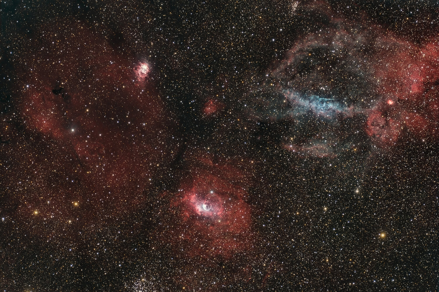Néb diff La nébuleuse de la bulle entourée de M52 et de la pince de homard