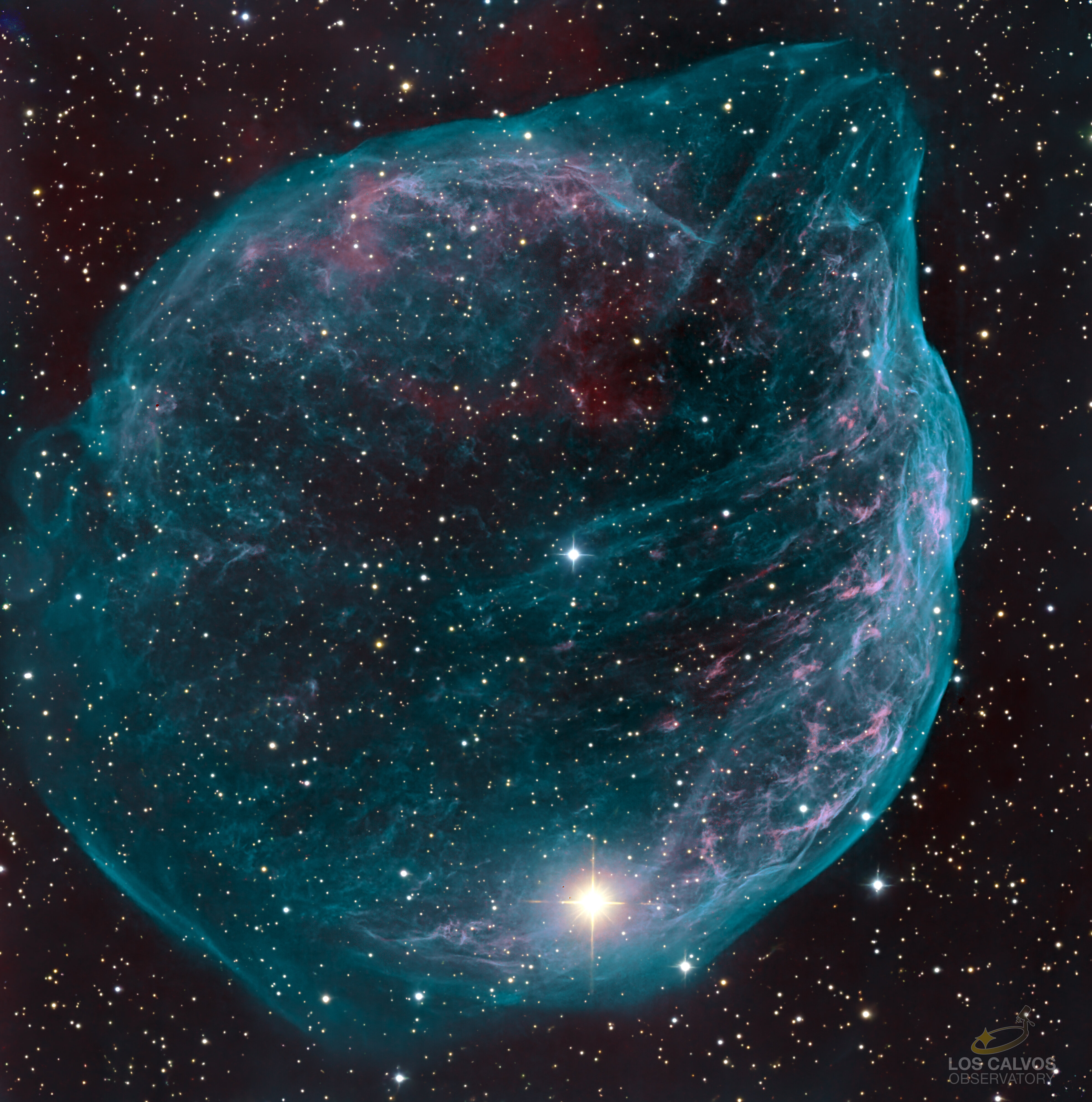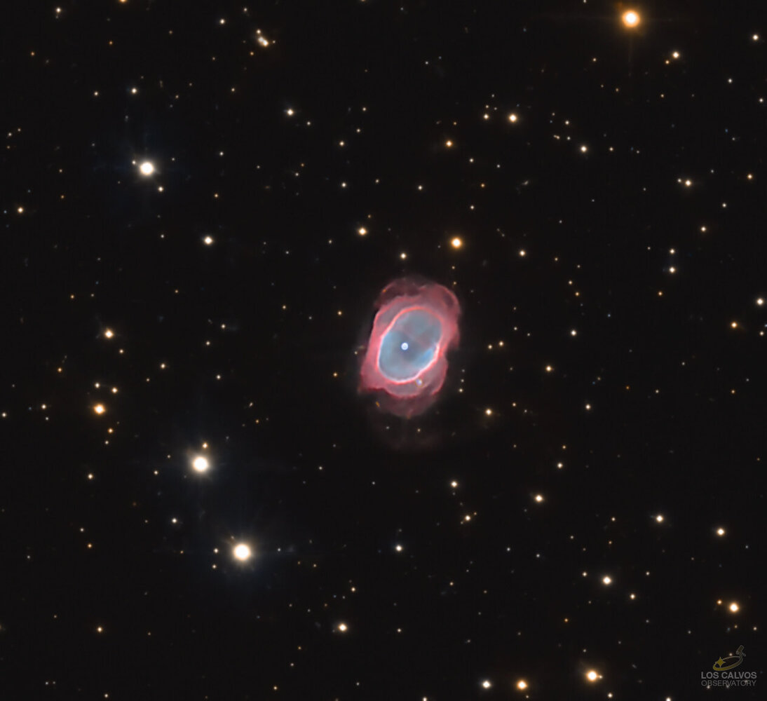 Nous avons fait un petit essai sur cette petite nébuleuse mais uniquement en RGB et il était impossible d’obtenir la luminance... Nous avons donc utilisé le meilleur du RGB pour faire une fausse luminance Le résultat n’est pas trop mal et montre bien les caractéristiques de cette petite nébuleuse. Le crop de la nébuleuse a été effectué en drizzle bruine et non redimensionné par la suite. Le champ global est présenté en versionA sur astrobin. NGC 6337 est une petite nébuleuse planétaire bipolaire (PNe), également connue sous le nom de nébuleuse de Cheerio, située dans la constellation du Scorpion, à environ 5 200 années-lumière de distance. Il est situé dans un champ de nébulosité d’hydrogène à l’arrière-plan. Les nébuleuses planétaires résultent de l’évolution d’étoiles plus petites (0,8 à 8 masses solaires) qui finissent par devenir une naine blanche. Souvent, cette évolution est plus compliquée, comme c’est le cas de NGC 6337, où il y a une paire binaire d’étoiles impliquée (Hillwig et al. Ap J, 140, 319, 2010). C’est un domaine de recherche actuel sur la façon dont les étoiles binaires façonnent la structure de PNe. L’anneau intérieur circulaire brillant mesure environ 0,9 minute d’arc de diamètre. Il y a un halo étendu qui est allongé dans la direction NW-SE et qui dure environ 1,5 minute d’arc. Ainsi, nous pourrions regarder principalement vers le bas dans un lobe en expansion de la PNe. Les chercheurs appellent cela un écoulement collimaté bipolaire. La nébuleuse est brillante à la fois dans les émissions d’hydrogène-alpha et d’oxygène. L’anneau intérieur brillant a un certain nombre de « nœuds » brillants qui peuvent être des nœuds cométaires. Il y a une région plus sombre autour de l’anneau. Il semble également y avoir des « rayons » radiaux faisant saillie dans la région du halo, similaires à ceux trouvés dans la nébuleuse de l’Hélice. Enfin, il y a deux lobes plus petits qui s’étendent au-delà du halo. Bien que cette PNe soit petite pour la plupart des télescopes amateurs, les caractéristiques variées sont clairement discernables. NGC 6337 fait partie du rare groupe de nébuleuses planétaires où un noyau binaire proche a été identifié. La morphologie de la nébuleuse et les profils de raies d’émission sont tous deux inhabituels, en particulier ce dernier. L’étude de la forme est ici : https://iopscience.iop.org/article/10.1088/0004-637X/699/2/1633/pdf Fuul & details onastrobin : https://astrob.in/x31pyl/B/
