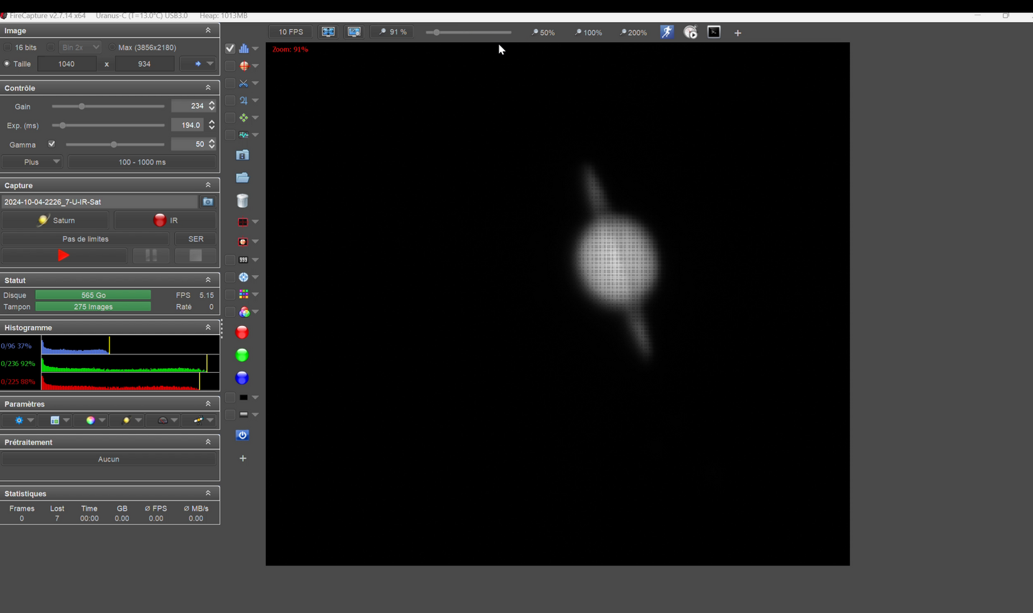 Pendant la session, je monte le gain pour faire la mise au point, puis je le baisse, je laisse le gamma par défaut, et j'ajuste l'exposition/gain selon l'histogramme.