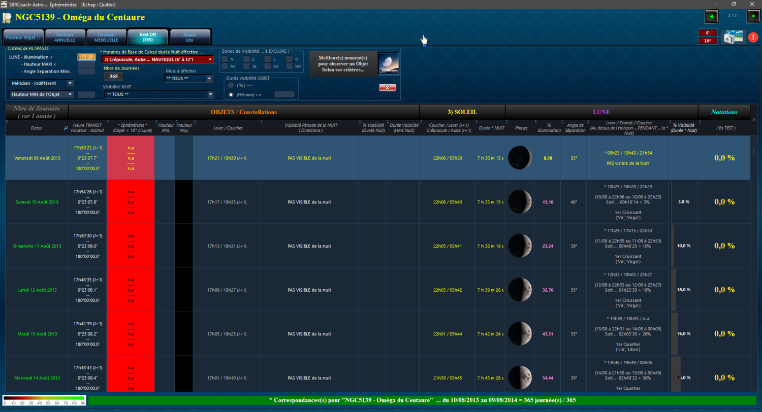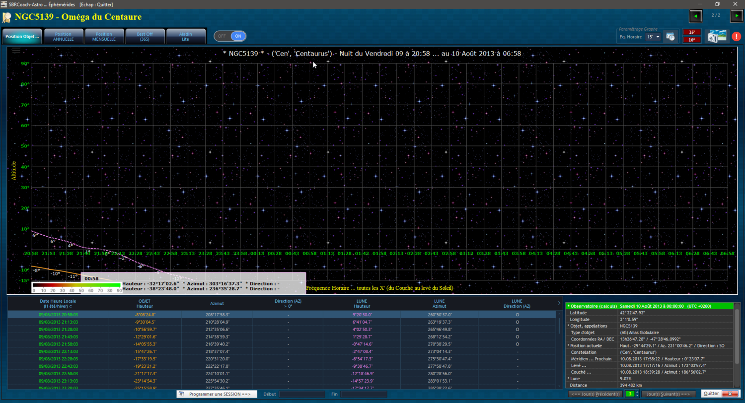 4. Slt Ayant de TRES GROS DOUTES sur l'observabilité en FRANCE (Métropolitaine hein !) J'ai fait une simu au 10 Aout 2013 avec une latitude tres basse en France 'ARGELES SUR MER' et nada (parcourus tous le mois d'aout) et l'année à mon avis vs avez vu autre chose vu votre latitude et altitude Sinon apparemment "certains l'auraient vu voler" ... à priori ça peut etre possible au Pic du Midi sous certaines conditions selon cet article : http://www.astrosurf.com/rondi/t60/omega/ Les spécialistes (que je ne suis pas) te répondront