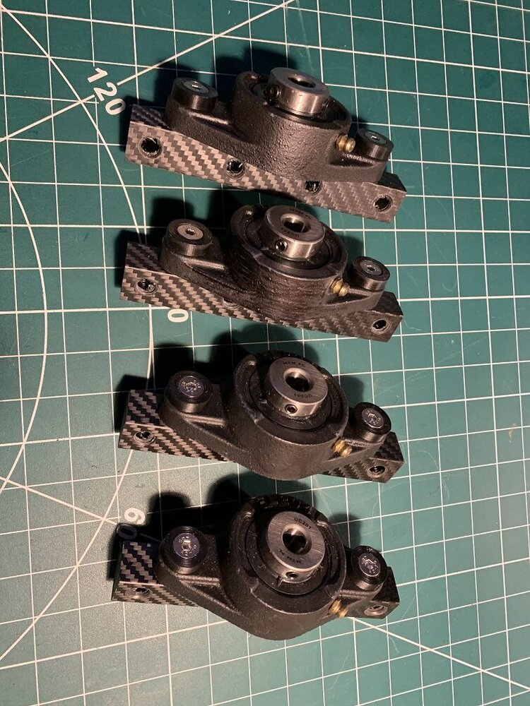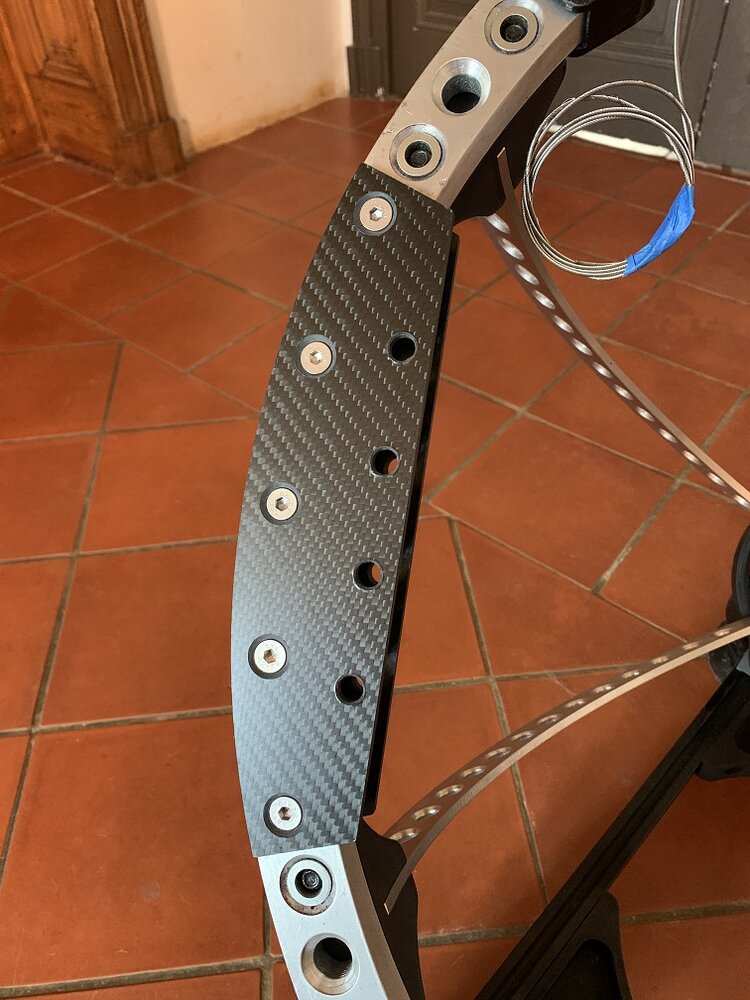 Bonsoir Je continue avec l'axe DEC ... Découpe des supports des paliers dans des profilés carrés 20 x 20 mm creux en carbone, paroi de 2 mm. Perçage et impression 3D d'une âme en ABS qui garnit l'intérieur (press-fit) pour le guidage des inserts et assemblage de l'ensemble. Présentation sur la monture d'un sous-ensemble pour vérifier que ça se monte. La suite du programme, probablement le week-end prochain, c'est encore de l'usinage : 4 axes DEC (inox) 4 moyeux des roues tangentes (alu) 4 moyeux des cabestans de verrouillage de l'axe DEC (bronze ou laiton, suivant ce que je trouve -