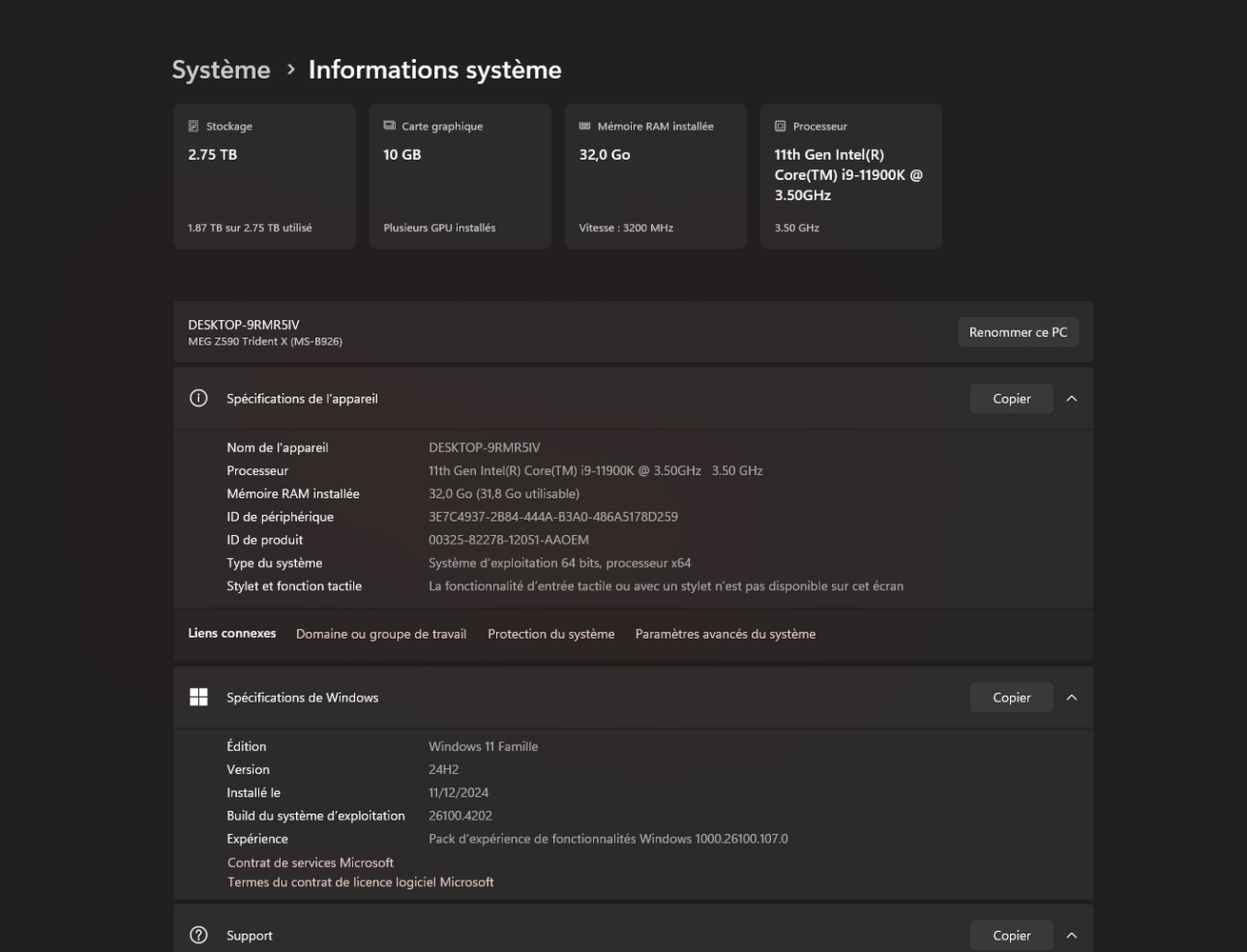 Bonjour à tous, Ayant un très bas niveau en informatique, cela faisait un bail que je repoussais l'opération permettant d'augmenter les capacités de calcul de mon ordinateur en m'aidant de ma carte graphique (NVIDIA GeForce RTX 3080) car je possède les process star/blur/noise exterminator et starnett. J'ai finalement décidé de franchir le pas hier soir ... mais sans résultat : après avoir procéder à l'installation et redémarrer l'ordinateur, j'ai tenté "blur exterminator" et "starnett", le process est toujours aussi lent. En pièce jointe : - un aperçu du gestionnaire des taches pendant que" starnett " tournait : la carte graphique ne semble même pas être sollicitée ! - ma configuration actuelle. Je pense avoir scrupuleusement suivi les consignes, très détaillées, données dans le tuto de la chaine youtube de "EXPLORE ASTRO", qui suit lui même la plupart des consignes que j'ai pu voir sur divers sites (dont WEBASTRO). En pièce jointe, les fichiers correspondants téléchargés. Si certains d'entre vous ont une idée, je reste à leur disposition pour tous renseignements complémentaires. Bon ciel et bien cordialement. JC