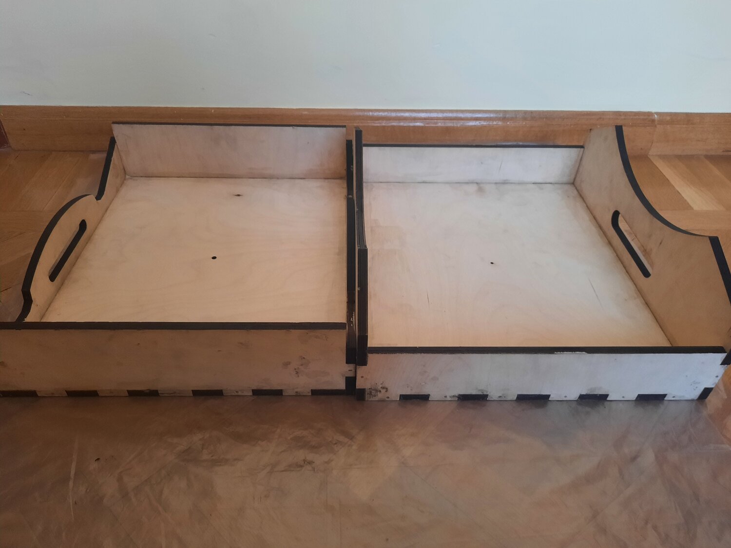 Bonjour à tous, Je souhaitais partager l'avancement de mon strock 250 qui est en construction depuis quelques semaines maintenant. Tout d'abord merci à tous sur le forum pour les nombreux posts qui aide énormément et au site magnitute78 pour les plans et tout le reste! Je possède déjà un dobson 250mm et le but donc est de le transformer en strock, j'avais pensé à simplement le transformer en une version plus portable en gardant le maximum de pièce mais finalement je me suis rabattu sur le strock car pour quelques centaines d'euros supplémentaire on a vraiment quelque chose de transportable et aboutis. Pour la quincaillerie, j'ai tout trouvé sur amazon, pour tout ce qui est carbone, sur aliexpress et en outil je n'ai pas d'atelier étant en appartement, j'utilise une Drell avec des accessoires et une visseur-perceuse, des outils de bases, pour le moment et ca fonctionne bien. Voici quelques photos : Donc le bois c'est du CTP de bouleau donc en 10mm pour la caisse et 5mm pour la cage du secondaire, le tout collé à la colle à bois et clouté, fait à la découpe laser. Pour tout ce qui est aluminium, je vis à l'étranger et impossible de trouver des plats en alu etc donc je me suis rabattu sur l'acier, pour les haches c'est du 1mm et pour le reste c'est du 2mm, c'est beaucoup plus lourd que l'aluminium (4x plus dense il me semble) mais ca rajoutera du poids en bas lol, pour les bars de support du barillet, c'est également de l'acier plein en 8mm, les photos plus bas. Collage des plats en acier de 1mm donc, ca a été plus difficile que je le pensais car l'acier est beaucoup moins souple et j'ai du tester plusieurs type de colle, l'époxy cassait au bout d'un certain temps donc je me suis rabattu sur une sorte de silicone de chantier, Pufas Kleber K15 pour ceux qui connaissent^^ La cage du secondaire déjà peinte en matte dans l'attente des autres pièces, pour info sur les plans de la découpe laser, les 8 pièces de la cage du secondaire sont trop larges de 1cm de chacun coté donc soit à retailler ou soit modifier les plans directement sur le fichier DXF (UPDATE: Merci à Yannick78 pour sa réponse : - les 8 faces de la cage secondaire sont trop grandes et c'est volontaire. si tu regardes les plans page 17 du pdf du strock paramétrable ou sur l'image en PJ, tu verras que pour plus de rigidité de la cage nous avons choisi de faire un recouvrement des faces dans chaque angle. on effectue un premier collage puis avec une ponçeuse à bande on vient araser la partie en trop jusqu'au diaphragme, puis on recommence avec les 4 autres faces.) Ensuite je me suis attaqué au barillet : Comme écrit plus haut les bars sont en acier plein de 8mm Comme c'est du plein j'ai taillé la barre pour avoir un espace de blocage pour le boulon, puis j'ai percé la barre d'un léger angle pour que le boulon bloque lors du serrage desserrage des vis de collimations. Pour info les ressorts, ceux pour la collimation, celui pour l'araignée du secondaire et le ressort de résistance pour équilibré le télescope (si nécessaire) je les ai trouvé sur le site de Sodemann Ressorts https://www.ressorts-sodemann.fr/ Perçage des barres : Barillet opérationnel, avec les billes (5mm pour la grosse et 3mm pour les 2 petites) et les petits tubes en laiton inséré dans la planche pour guider les clous, les triangles sont bien à 5mm au dessus du plancher :