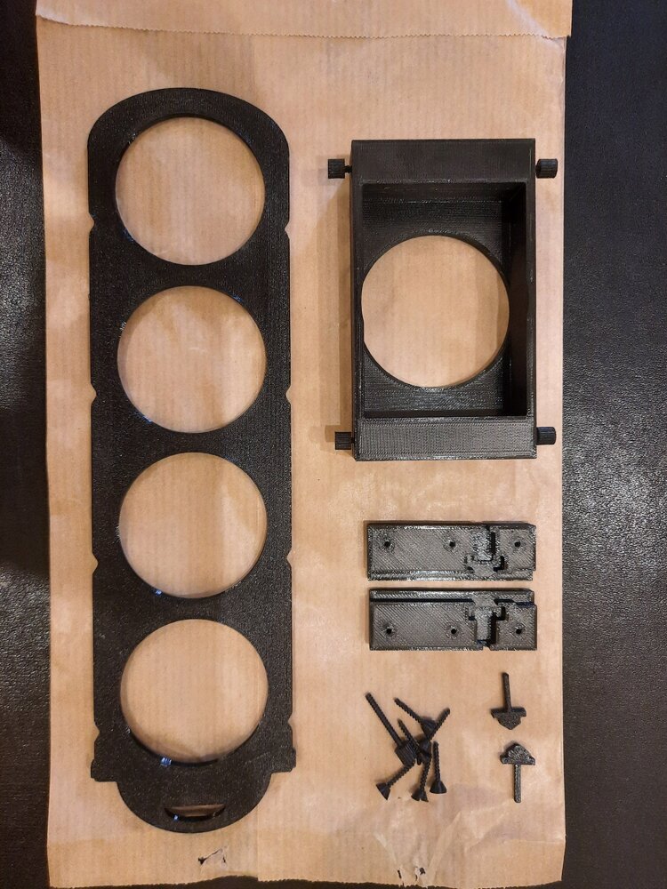 Je voulais aussi partager la création d'un porte filtre 2" en impression 3d. Pourquoi en 2 pouces, tout simplement pour être polyvalent sur d'autre télescope monté en 2 pouces et pour éviter le vignetage. Pour cela je suis partis des plans de @keymlinux(merci pour le partage! ) J'ai repris les pièces bleu (le passe filtre) et les pièces jaune et verte que j'ai modifié pour l'adapter à la cage du secondaire du strock. Donc la pièce fait 55mm de haut et 96mm de largeur, assez pour qu'elle rentre dans la cage du secondaire, la longueur est de 27mm pour qu'elle se calle bien à l'intérieur de la cage et que le passe filtre coulisse sans blocage avec celle ci et sans devoir découper la cage, le porte filtre dépasse donc d'environ 8mm, sur 280mm de cercle de cage de secondaire et un miroir de 254mm ce qui je crois n'occasionne pas d'obstruction. Donc voici le lien vers Tinkercad : https://www.tinkercad.com/things/6mQDd0Vyt08-porte-filtre-strock-250?sharecode=UldC8xbvdZ0jfCvQhtdeM9XVYITTzJp1Dgt7WkLYhxM Le lien est public, vous pouvez l'imprimer et le modifier si vous le souhaitez. Voici les plans sur Tinkercad : Voici après impression : J'ai imprimé en PETG noir avec un remplissage à 75% et une précision de 0.1mm (fait par une entreprise) J'ai repris le mécanisme de @keymlinux avec la moitié d'un ressort de stylo de chaque coté et qui fonctionne très bien, on entend bien le clique à chaque passage. J'ai également imprimé les vis, le porte filtre est fileté de l'intérieur avec 6 vis (les petites) qui fonctionne mais qui sont trop fines et qui risque de casser (vous pouvez modifier les plans pour en faire des plus grosses, n'oubliez pas d'agrandir le filetage intérieur, il y a de la place) donc j'ai mis des vis classiques de 20mm. La fixation sur la cage du secondaire et faite par 4 vises plus grosses qui permettent en perçant la cage du secondaire de bloquer le porte filtre, le filetage des 4 vis est également prévu dans le porte filtre, là aussi vous pouvez les agrandir mais ca fonctionne déjà en étant pas trop violent ou en les remplaçants par ce que vous voulez. Vous pouvez aussi la coller tout simplement. Pour le moment je l'utilise telle qu'elle car facilement "coinçable" dans la cage. Voici avec les vis : (j'ai ai mis 4 sur 6 car suffisant) Le porte filtre entier avec les vis fait 80g, comme indiqué j'ai choisi un remplissage de 75% car première expérience avec l'impression 3d et j'ai pas de problème d'équilibre mais moins irait très bien aussi. La pièce la plus lourd est la pièce verte sur les plans, il est très facile de gagner pas mal de poids dessus car j'ai fait un bloc entier donc libre à vous de la couper, raccourcir de l'intérieur ou la faire creuse Voici les photos une fois monté : N'ayant jamais utilisé Tinkercad, je dois avouer que ce n'était pas très compliqué et c'était surtout passionnant à faire Me reste plus qu'a acheter des filtres je suis débutant dans les filtres mais qu'elles filtres utilisez vous sur vos strocks? Au passage j'ai testé le filetage du passe filtre avec une bague d'allonge pour occulaire 2" et il fonctionne très bien. -