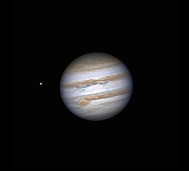 Bonjour à tous, Voici une première image de Jupiter obtenue avec une caméra Altaïr gpcam3 imx 290c, une Barlow X2 et un Dobson Explore Scientific 305 sur plateforme équatoriale. Capture: FireCapture. Traitement PIPP, Autostakkert, Astrosurface, Registax, Affinity photo. Je sais qu'il y a moyen de faire mieux, notamment en utilisant une Barlow X3, mais je teste. Liège, 07.10.23.