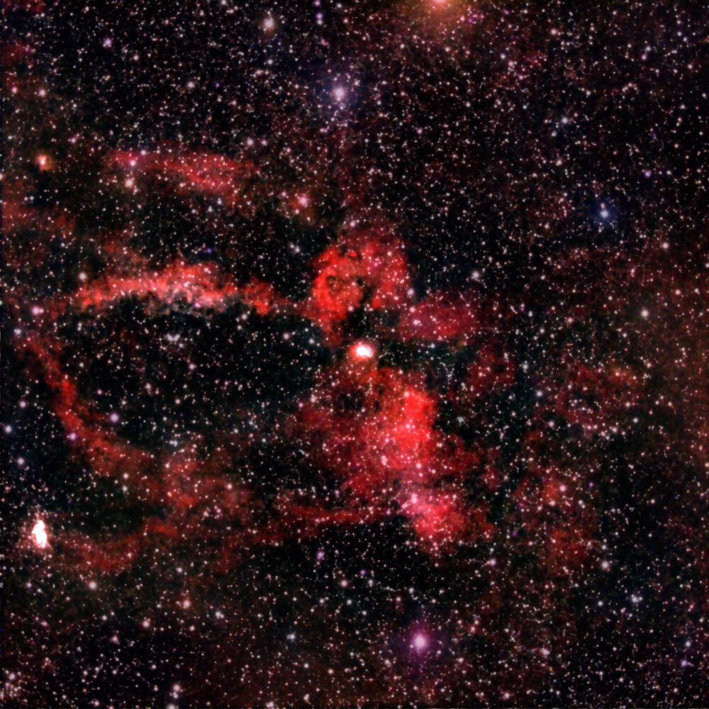 Bon, ceci dit, j'ai put m'essayer à une nébuleuse obscure dans Céphée : LDN 1235 durant un peu plus de 4 heures. J'aime bien les petites touches de bleu.