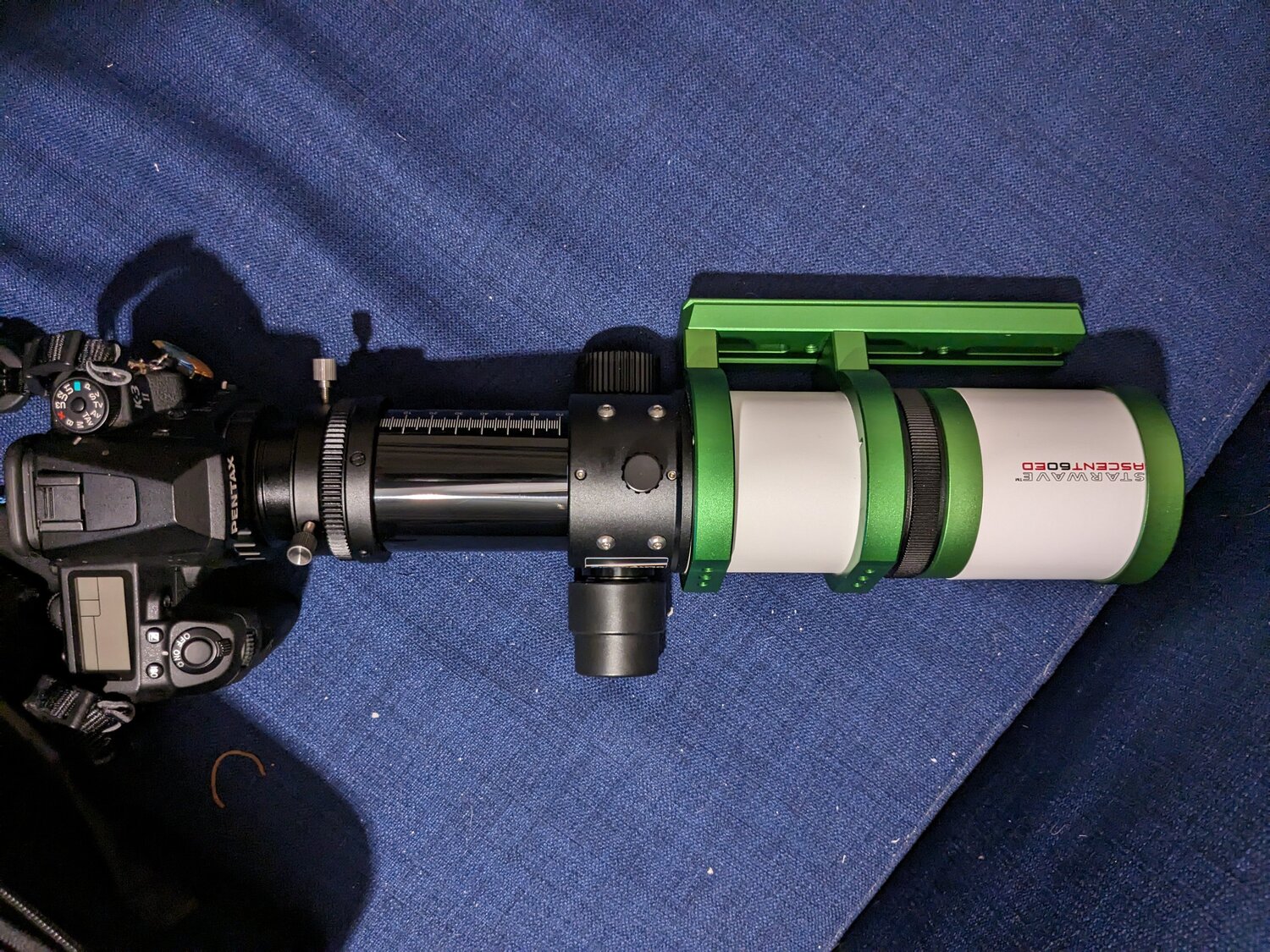 Bonjour à tous, Je fais de l'astrophoto depuis quelques années. Jusqu'ici j'utilisais mon APN (un Pentax K3II), d'abord avec l'astrotracer intégré (c'était pas si mal) puis avec une star adventurer 2i (que je n'ai pas eu beaucoup l'occasion d'utiliser). J'utilisais un objectif photo : un Sigma 70/200 f/2.8 qui est pas mal, mais pas idéal pour l'astrophoto. J'ai donc décidé de sauter le pas et de m'acheter une vraie lunette. Mon choix s'est porté sur la Starwave 60/360 d'Altaïr Astro que j'ai achetée chez Pierro Astro : https://www.pierro-astro.com/materiel-astronomique/lunettes-astronomiques/lunettes-apochromatiques2015-05-22-16-31-10/lunette-astronomique-60-360-apo-ed-doublet-fpl55-et-lanthane-altair-astro_detail J'ai pris la bague M48 adaptée à mon appareil (monture K pentax), mais le field flattener 1.0x pour cette lunette était en rupture (et introuvable ailleurs). Je viens de recevoir ma lunette et je me retrouve un peu bête à ne pas savoir comment la fixer sur mon boîtier. Est-ce que le field flattener est obligatoire ? Est-ce que j'ai raté un truc ? Bref, j'aurais besoin de quelques conseils... Je pars dans les Alpes le 22/07 et j'ai pour projet de faire quelques nuits d'astrophoto, donc j'aimerais bien comprendre avant. Merci de votre aide à tous Flore -