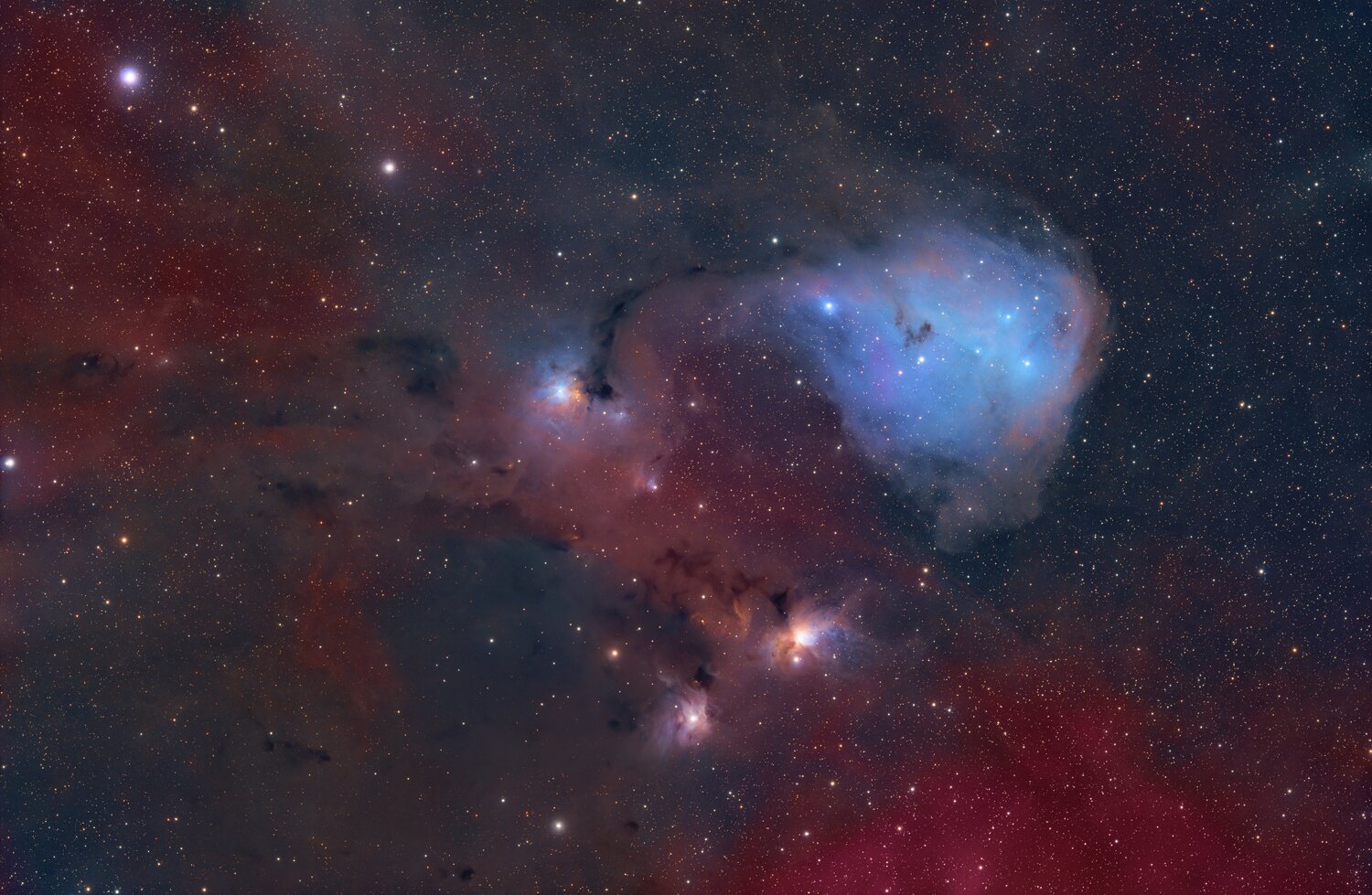 Hello à tous. Voici une image prise en remote depuis l’observatoire SADR au Chili, en collaboration avec Loïck, Jean-Paul et Gaëtan. Il s’agit de IC 447, la relativement peu connue et néanmoins magnifique nébuleuse dite « de Dreyer », dans la constellation de la Licorne. Environ 19h de temps d’intégration en HaLRVB, avec une TEC140 et une ASI6200MM. Comme toujours, les suggestions pour améliorer le traitement sont les bienvenues! La full est ici: https://www.astrobin.com/1ac6hw/D/