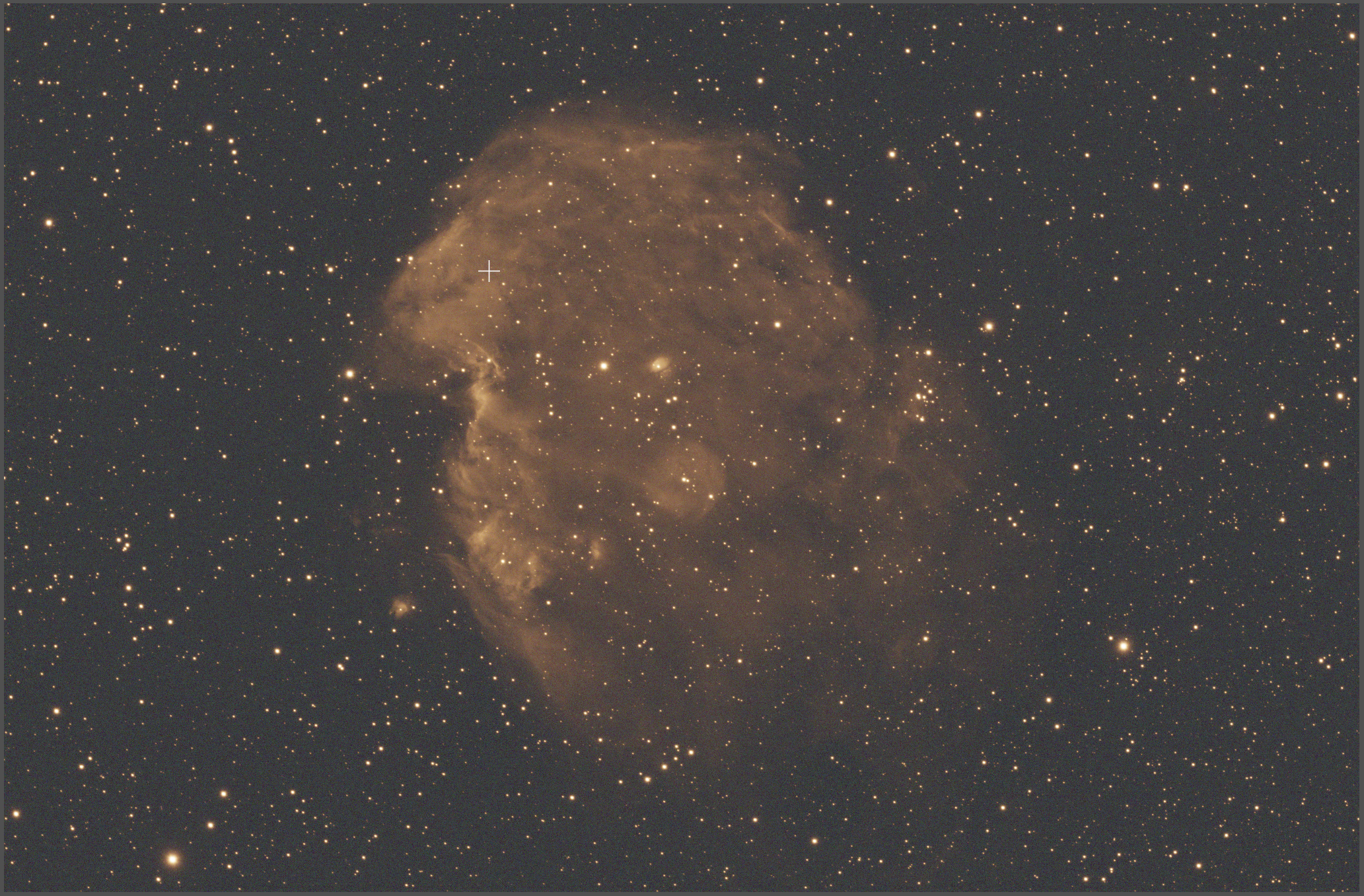 Bonjour, Voici le nébuleuse NGC2174 la nébuleuse de la tête singe en SHO. Une première version en SHO. Poste fixe dans le 82, Instrument Askar PHQ 130, 1000 de focale, EQ8R-Pro Asiair, OAG-L,guidage ZWO 220mm, Caméra ZWO 2600MC, Filtre ALP-T double bande Antlia, SII. 46 poses de 900s OIII 11,5 h 44 poses 900s en SII 14 h 94 poses de 900s HA 23h Traitement Pixinsight