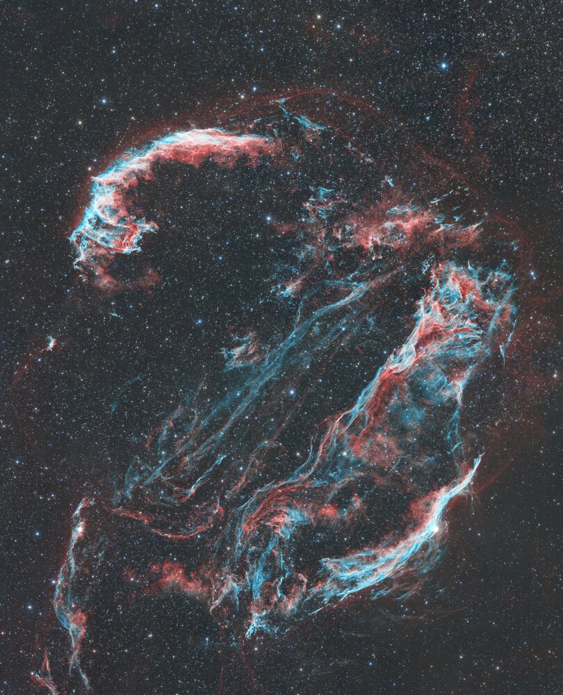 Bonjour, Ma première mosaïque de deux tuiles des Dentelles du Cygne, avec une FRA600 ,réducteurs FD 3.9 focale de 400 mm. Traitement en HOO sur 3 nuits le 08/08/2023 et le 11 et 12 aout 2023. Monture HEQ5, filtre Antlia ALP-T Dualband 5nm SII&Hb 2" · Optolong L-Pro 2" Antlia ALP-T Dualband 5nm SII&Hb 2": 144×300,″(12h) Optolong L-Pro 2": 340×30,″(2h 50′) Dans le 82 ciel bortle 3 Traitement PixInsight