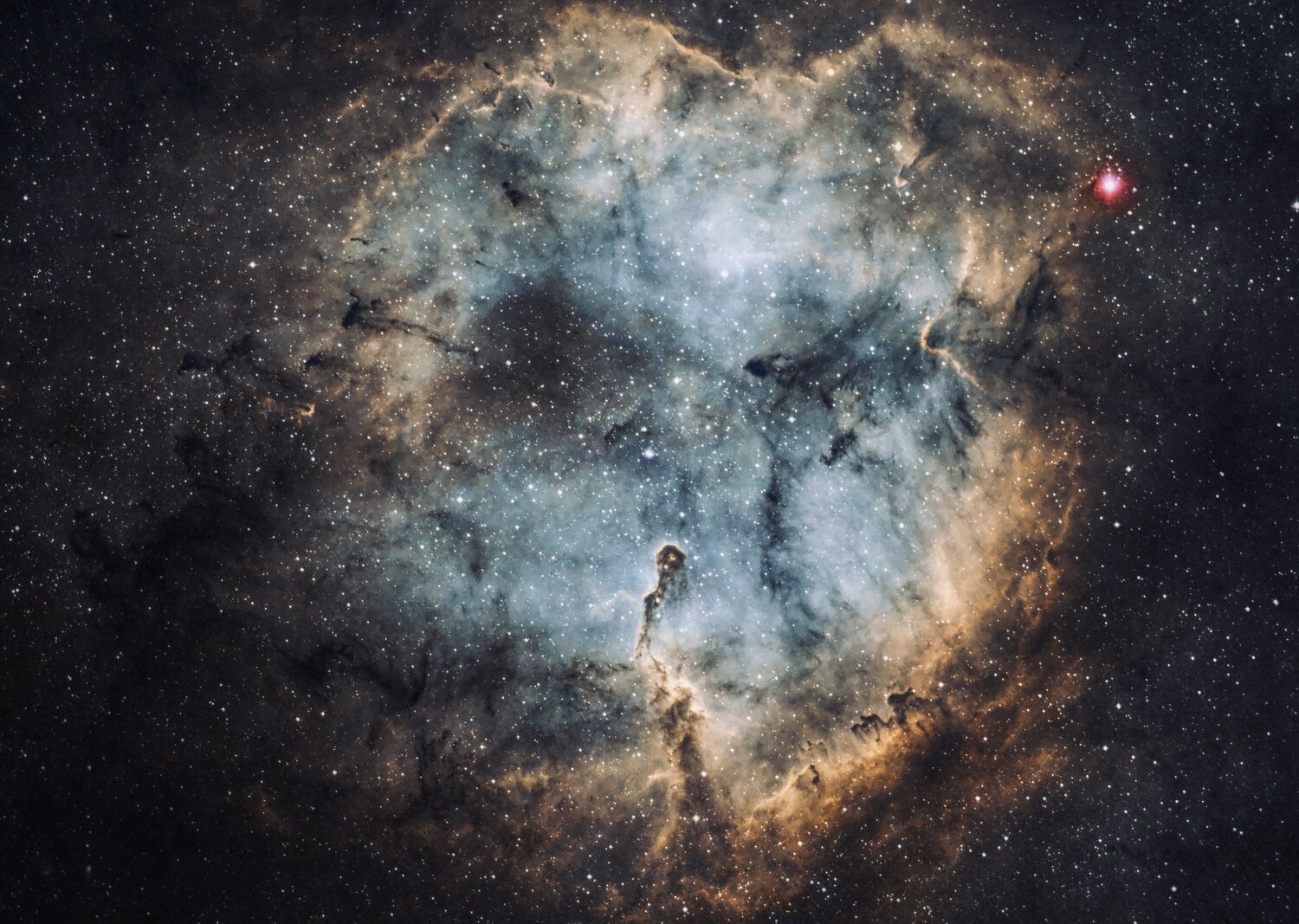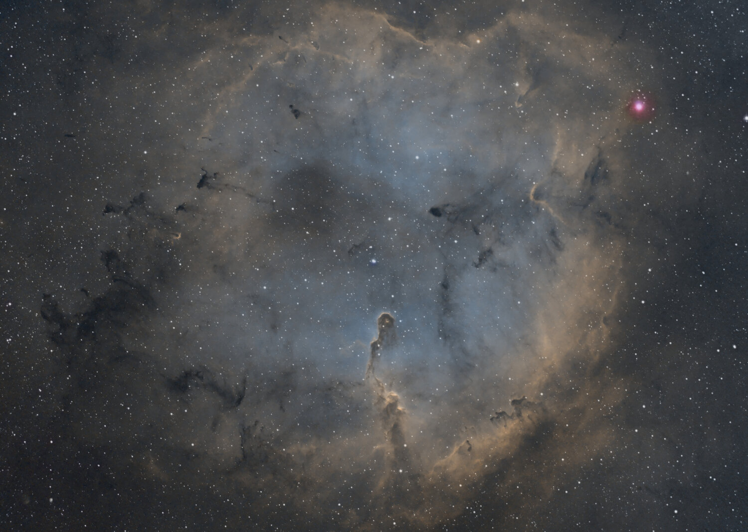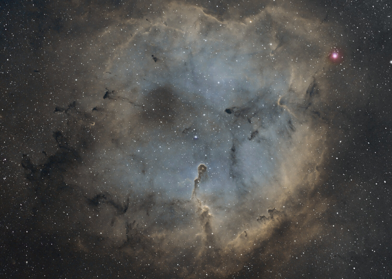 Cible plus compliquée que je ne pensais, j’ai dû monter à plus de 10h d’acquisition par canal pour avoir quelque chose à traiter sans devoir pousser tous les curseurs (pour IC1396 je suis resté à qqs heures) Je pense qu’il va même falloir que je rajoute du temps de pose car ce n’est pas encore très fin… et rajouter des panneaux car le lien avec l’âme est vraiment super esthétique bref, SHO zwo 7nm, grosso modo 10h sur chaque (peut être un peu plus sur oiii) FS60CB avec correcteur 0.72 donc 255mm f4.2 SIRIL + GIMP Pour la composition j’ai fait (commentaires bienvenus…) post traitement de chaque canal sous SIRIL par soir je me retrouve donc avec un répertoire de pp_Ha par soir alignement et empilement de tout les « pp ». j’arrive donc avec tous les soirs empilés pour chaque canal alignement des trois canaux puis starnet composition RGB (TSL) L = Ha R = Sii G = Ha B = Oiii étalonnage couleurs suppression bruit vert puis GIMP (ajout starmask) je pense tester avec L = SHO empilés 🧐 Je pensais que cette cible serait simple, mais elle me donne envie de sortir du centre ville pour avoir du ciel plus clair…