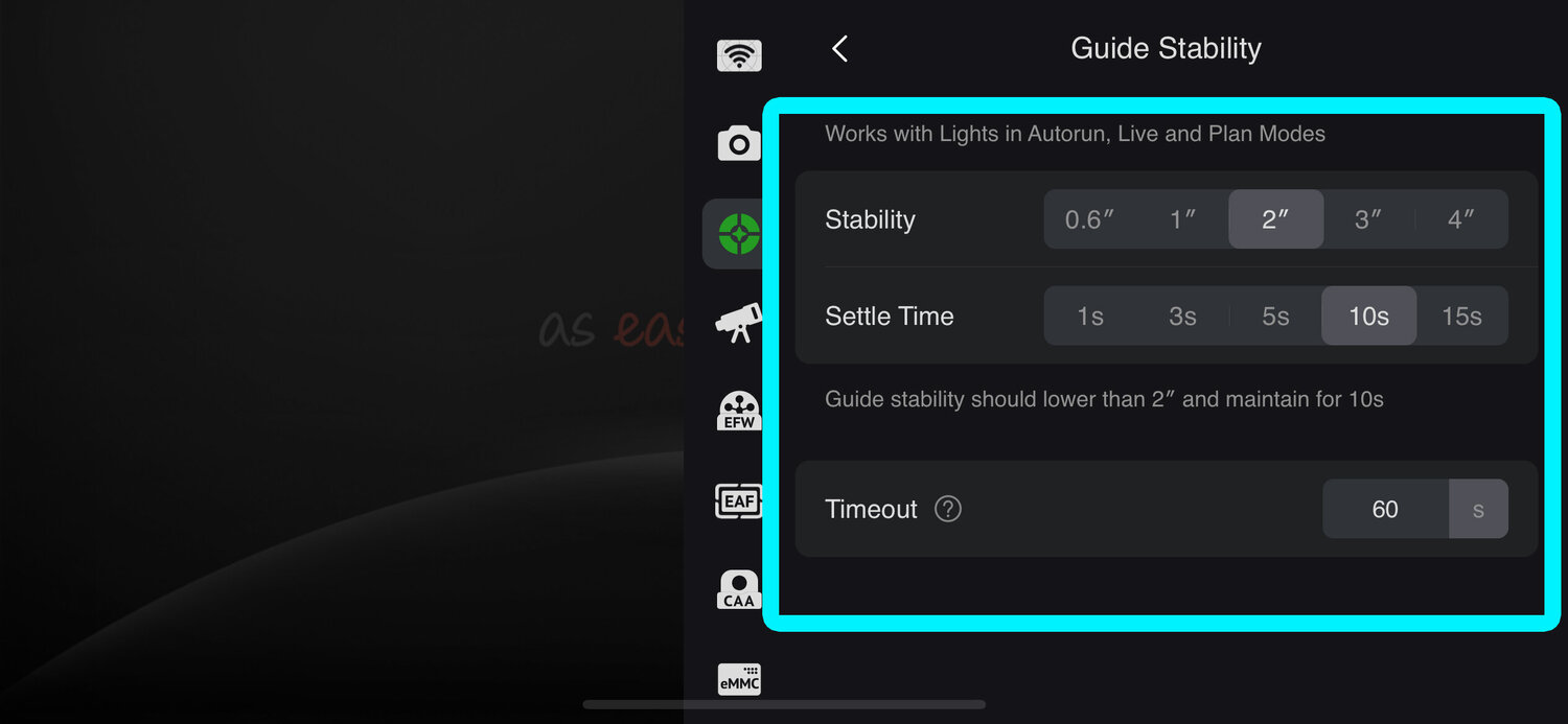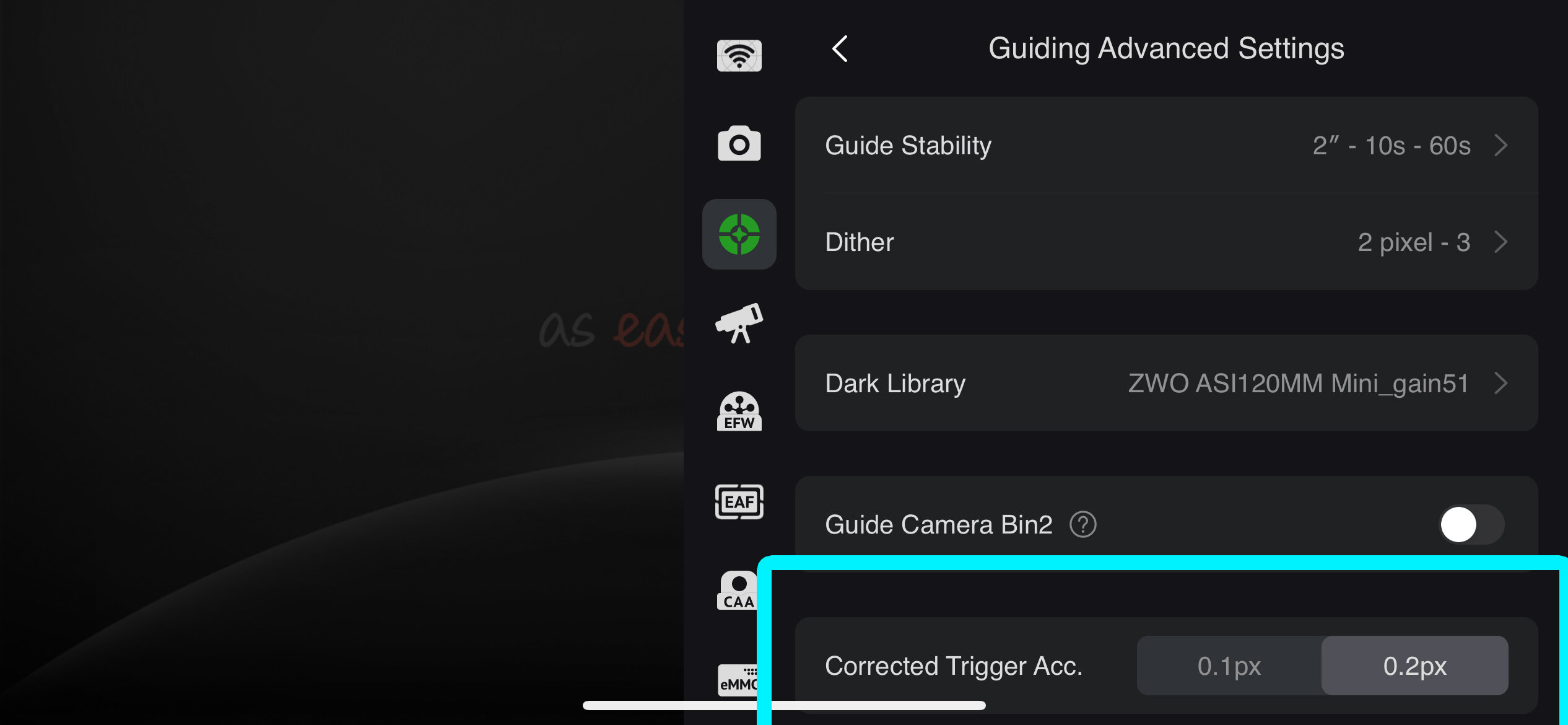 Si quelqu'un a le temps et si vous pouvez, en vous montrant mes réglages de guidage dans l'asi air me dire si je suis bon ou y aurait-il des choses à corriger ?