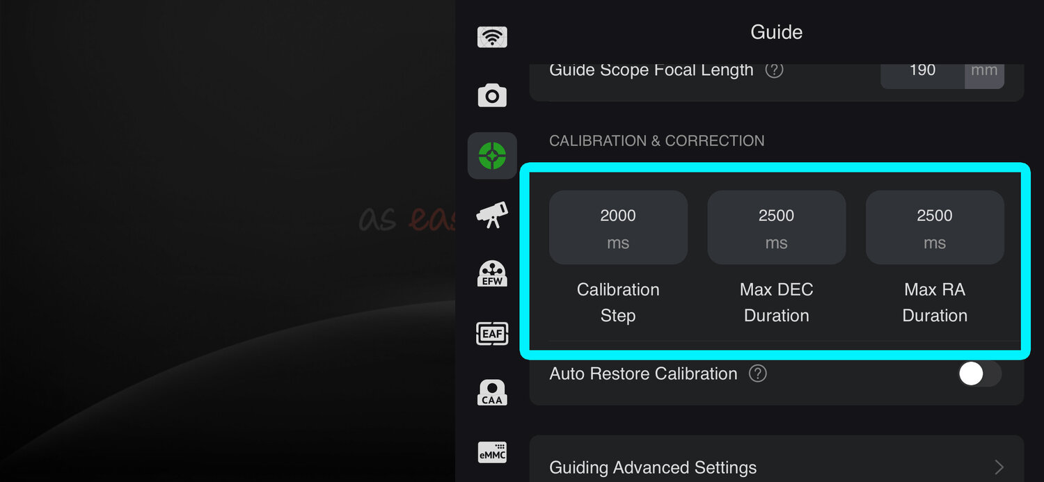 2-J'ai laissé les réglages de step calibration par défaut mais est-ce réellement important sur la qualité du guidage en DEC ?