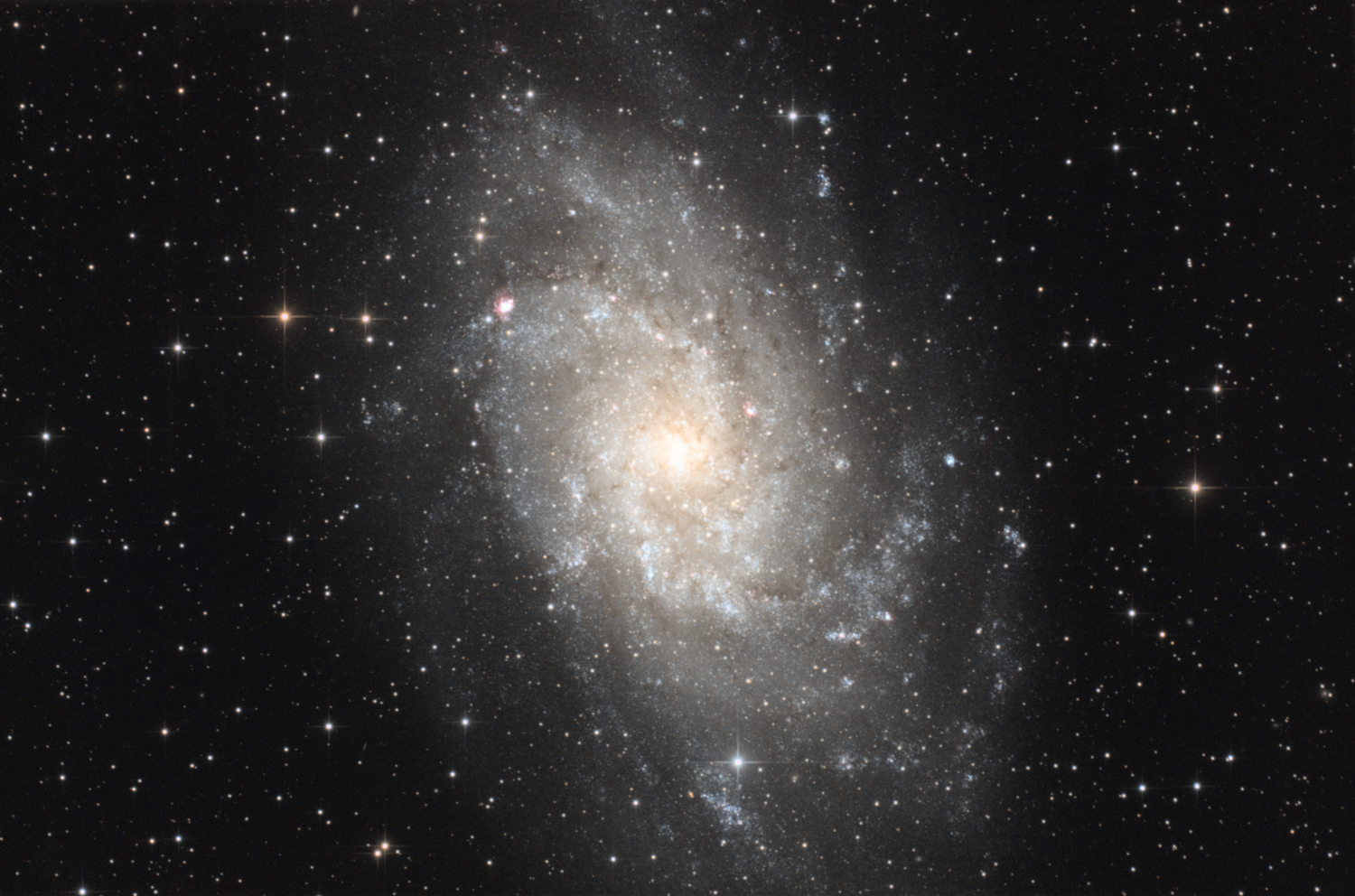 Du coup j'ai refait mes BIAS et effectivement le résultat est beaucoup mieux : Voici ma M33 fais avec le script j'ai fais une extraction du gradient, étalonnage des couleur par astrométrie, suppression bruit vert, et un traitement starnet.
