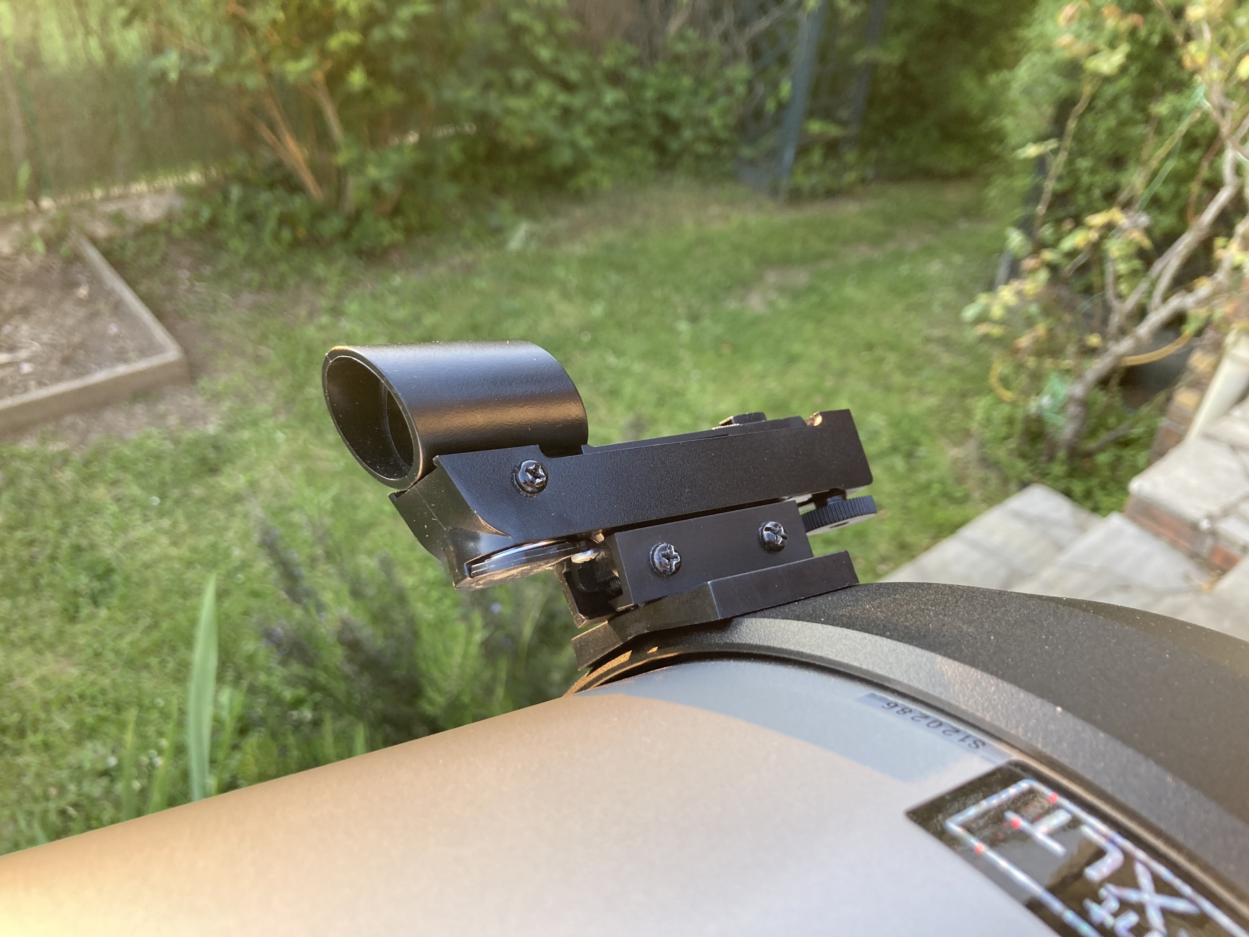 Mon chercheur est un viseur point rouge, hyper simple à régler et très léger. Vu ce que j’entends sur le C9 et la monture Evo, je vais essayer de pas trop charger la mule… cela étant dit j’attends toute la ligne optique en 2 pouces…😂 ça va pas aider ! Si c’est que pour l’aspect, disons que c’est moins urgent ! Je vais attendre de voir si ma boiboite me donne satisfaction avant de l’habiller d’une jolie jupe 🙂