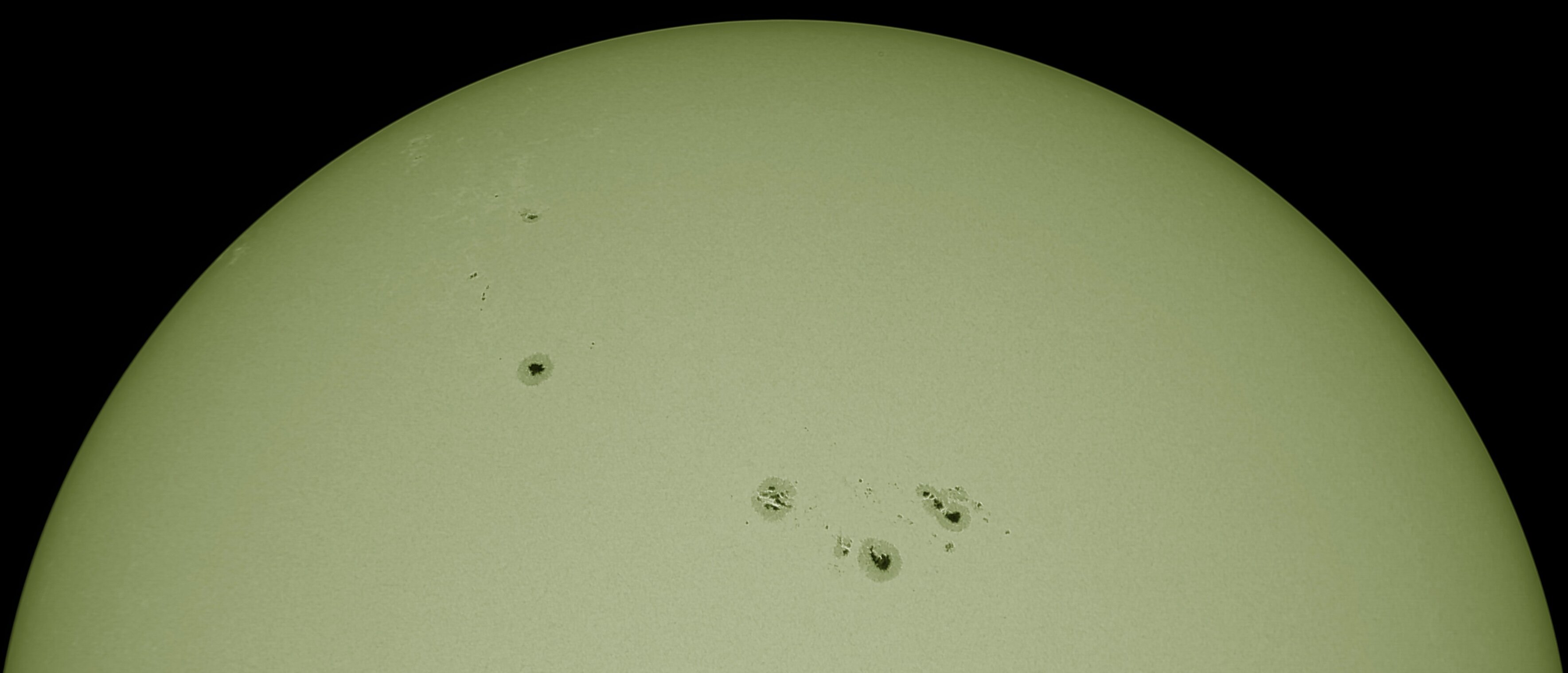 Hello ! Quelques images solaires du jour de l'armistice. Ironie de l'histoire, c'est pourtant un violent coup de canon que notre astre diurne a lancé directement vers la Terre, seulement 1h avant mes prises de vue. L'éruption de catégorie X5.16 ( dont la fin est perceptible sur mes premières images calcium ) a déclenché une tempête d'aurores boréales visibles sur le continent américain, quasiment jusqu'aux Antilles. En métropole française, quelques voiles rosées ont également été repérées là où la météo s'y prêtait. Le GIF qui va bien... Et la grosse tache à l'origine du phénomène, vue en lumière verte et haute résolution. La transparence était globalement mauvaise et le seeing moyennement variable, mais le symbole est là. -